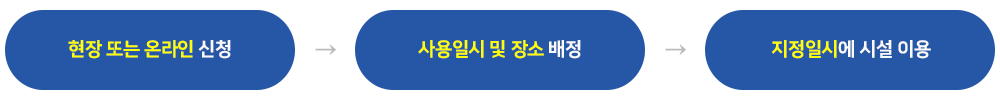 - 시설대관: 이용일 기준 30일 전 인터넷을 통한 선착순 사전예약