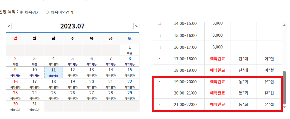 답변 : 테니스장 매크로확인부탁드립니다.(7/11예약분)