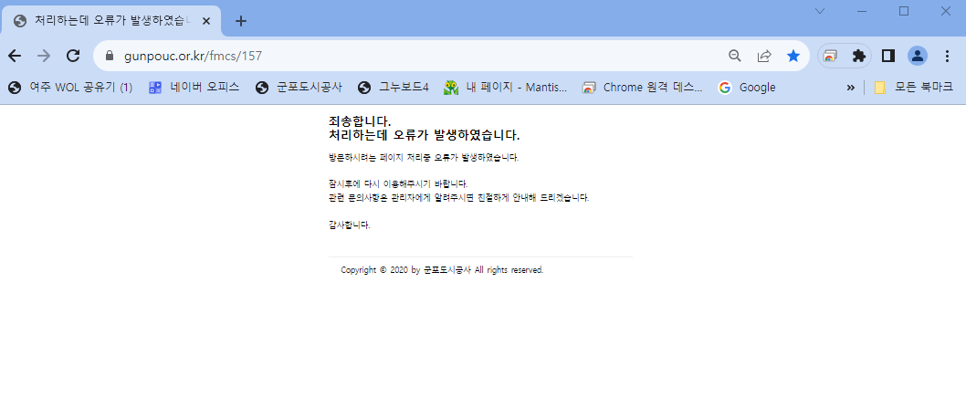 군포도시공사 예약시스템 오류는 아래의 원인으로 발생함을 알려드립니다.