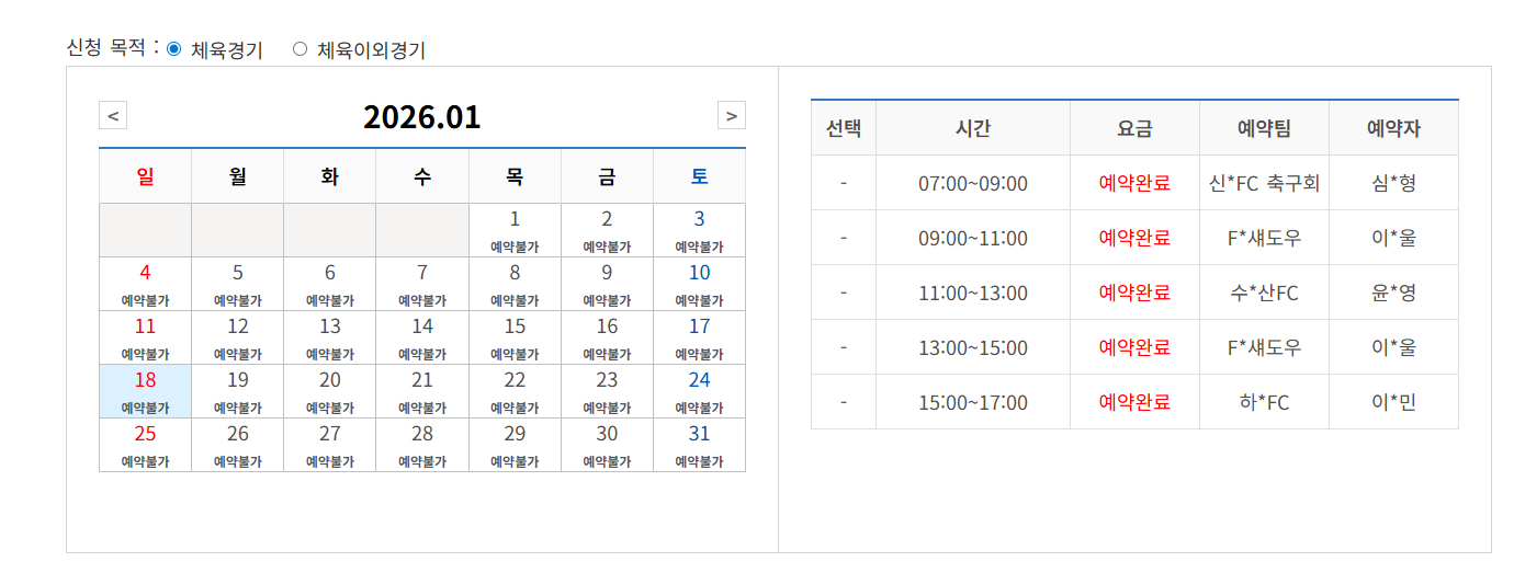 스포츠레저부 【답변완료】 축구장 예약 민원