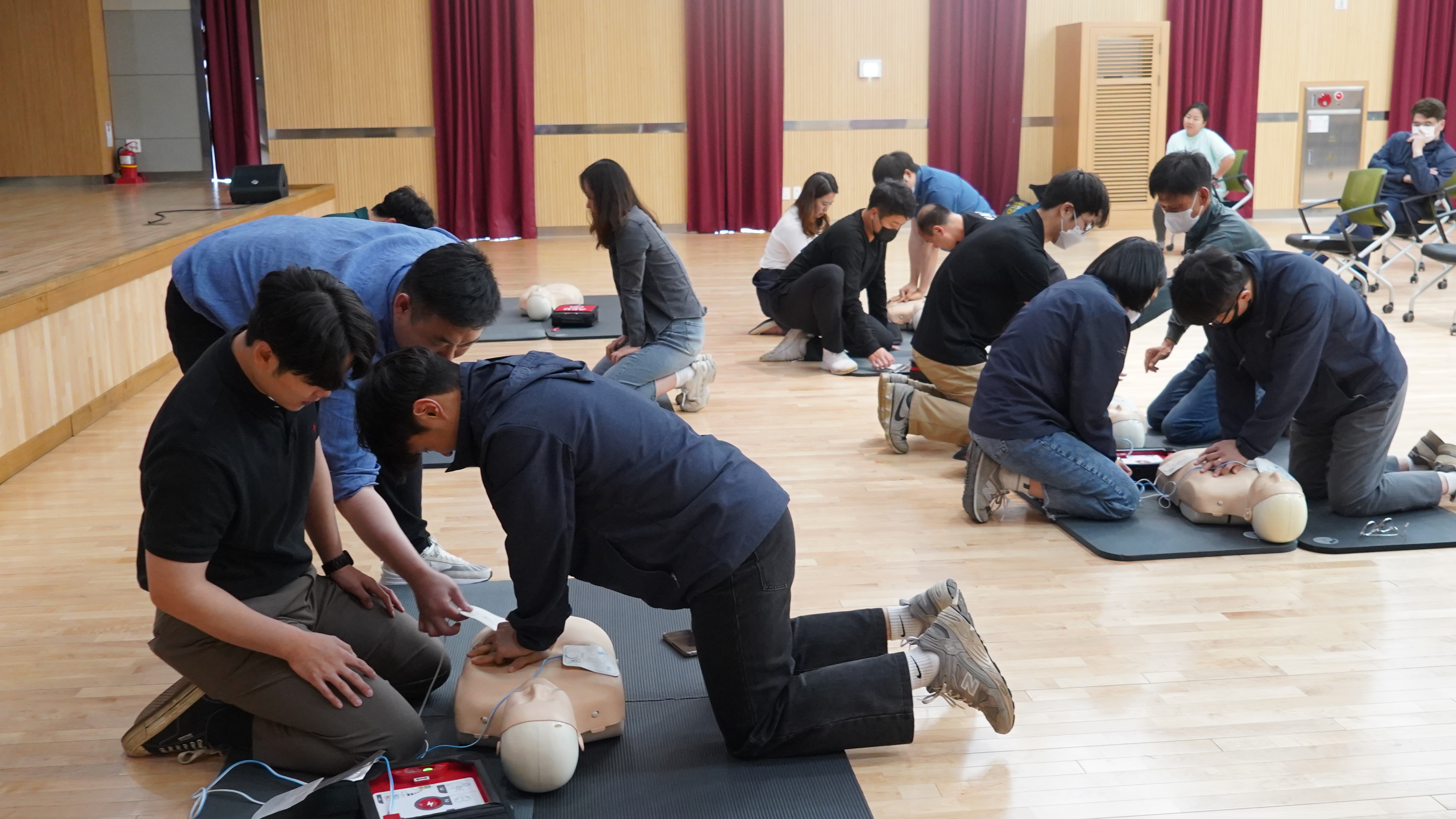 2023-05-04 심폐소생술 교육 실시 작성자 CS담당자 등록일자 2023년 5월 15일 10시 46분 19초 조회 357 군포도시공사, 보건소와 함께하는 심폐소생술 교육 실시- 응급상황 대처와 4분의 골든타임 확보 - 군포도시공사는 매월 4일 안전점검의 날과 더불어 군포시보건소와 함께 심폐소생술 및 자동심장충격기(AED) 교육을 실시하였습니다. DSC08023.JPG [ Size : 2.59MB , Down : 158 ] 미리보기 다운로드 DSC08041.JPG [ Size : 3.35MB , Down : 152 ] 미리보기 다운로드 DSC08069.JPG [ Size : 2.98MB , Down : 149 ] 미리보기 다운로드 DSC08084.JPG [ Size : 3.08MB , Down : 163 ] 미리보기 다운로드 목록보기
