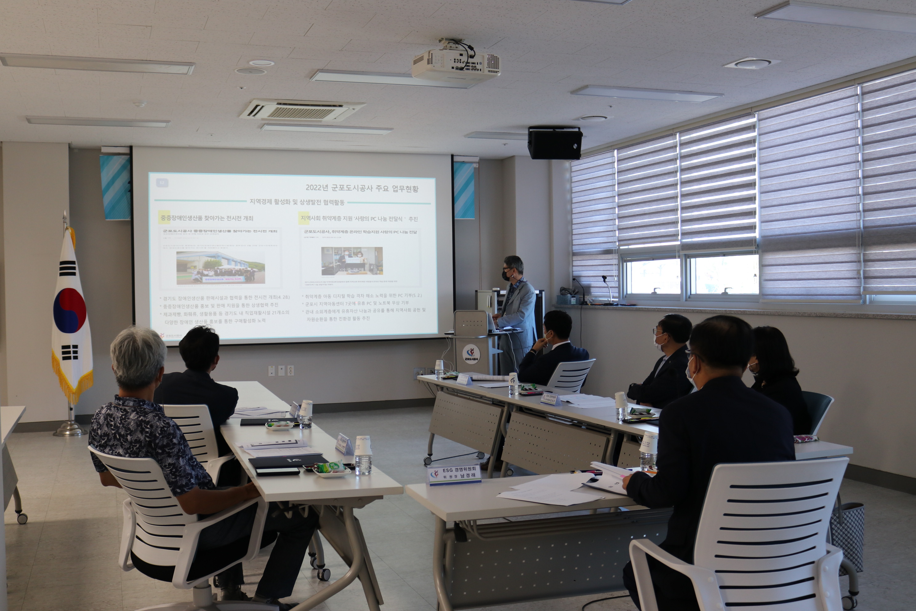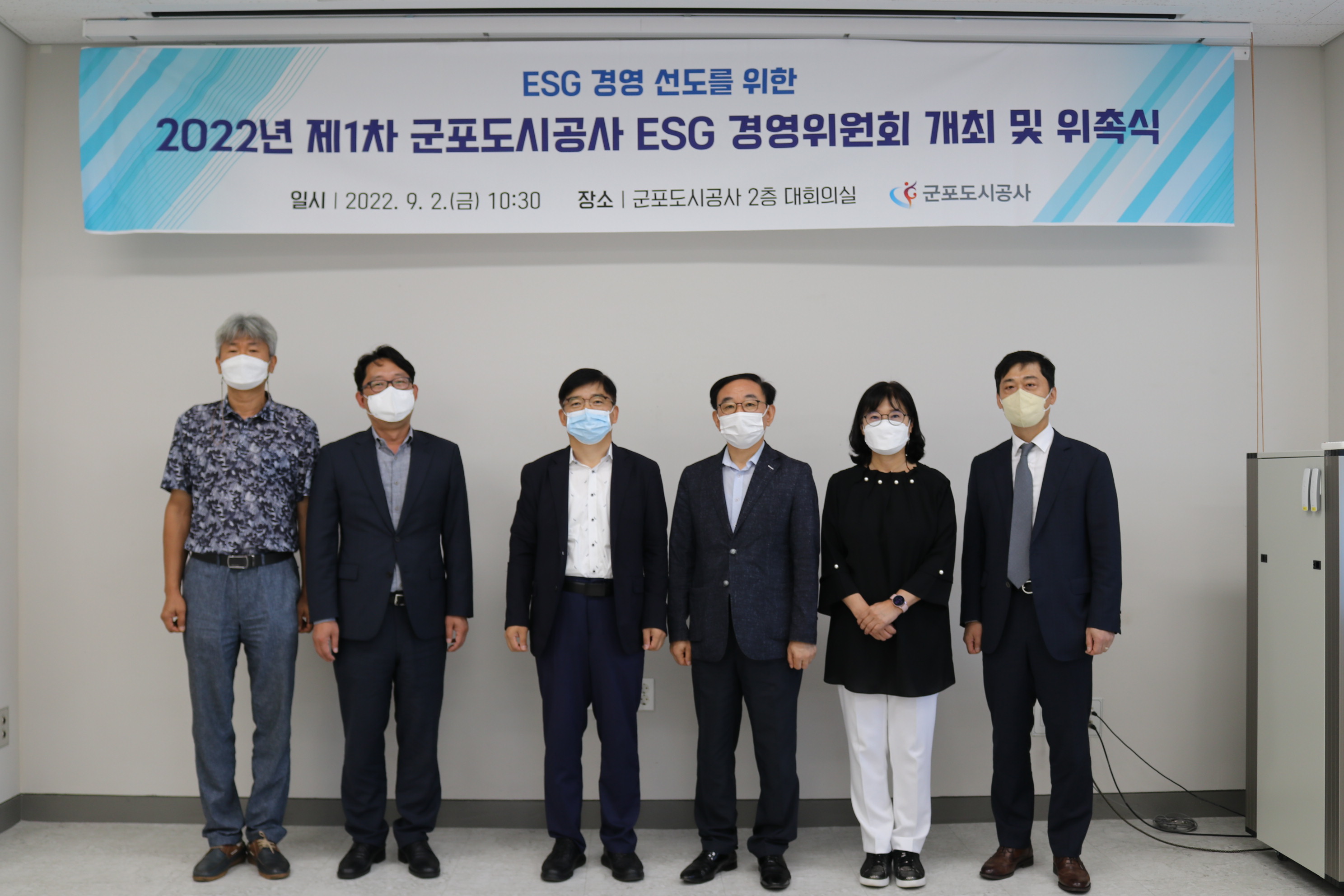 2022-09-02 2022년 제1회 ESG경영위원회 개최 작성자 CS담당자 등록일자 2022년 9월 6일 17시 14분 23초 조회 392 2022년 9월 2일2022년 제 1회 ESG경영위원회 개최군포도시공사 ESG경영위원회는 외부전문가 6명과 공사 경영시설본부장을 당연직으로 하여 구성되었습니다.공사의 ESG경영 방향성 및 중장기 계획·전략 등을 결정하고, ESG경영 세부 계획과 이행 성과 등을 관리·감독하는 역할을 수행합니다. 사진1.JPG [ Size : 689.57KB , Down : 86 ] 미리보기 다운로드 사진2.JPG [ Size : 971.41KB , Down : 88 ] 미리보기 다운로드 사진3.JPG [ Size : 847.44KB , Down : 88 ] 미리보기 다운로드 목록보기
