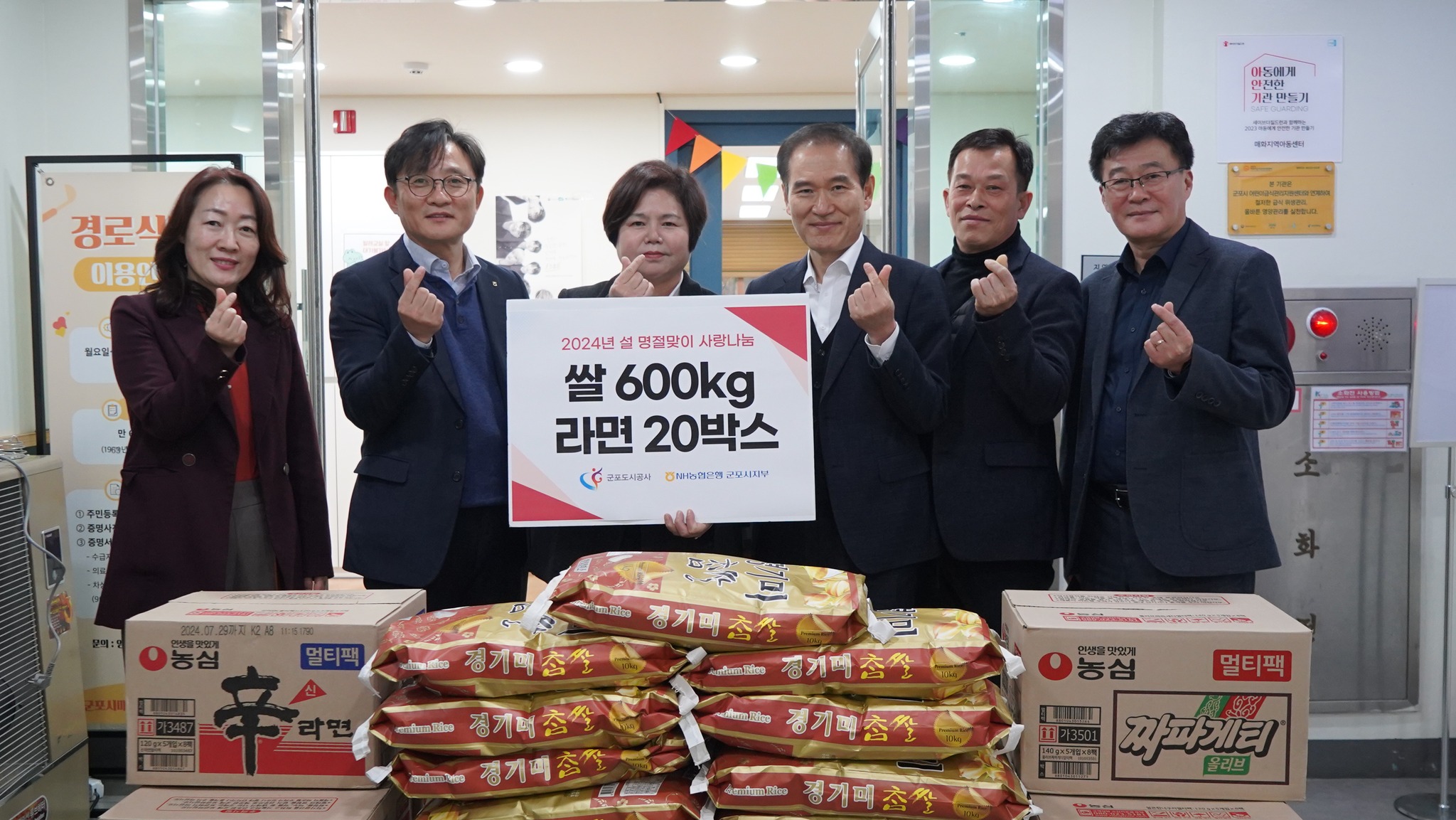 2024-02-07 설 명절맞이 쌀 나눔 행사 작성자 CS담당자 등록일자 2024년 7월 3일 15시 32분 18초 조회 230 <군포도시공사-NH농협군포시지부>설 명절맞이‘이웃사랑 나눔경영’실천군포도시공사는 설 명절을 맞아 NH농협은행 군포시지부와 함께‘매화지역아동센터’와 ‘솔 복지재단’에 각 쌀 30포(300kg)씩 총 쌀 60포(600kg)를 전달하였습니다. 426163210_412777404626501_5074212061521221602_n.jpg [ Size : 511.17KB , Down : 143 ] 미리보기 다운로드 426073313_412777381293170_5689788696579538885_n.jpg [ Size : 509.1KB , Down : 151 ] 미리보기 다운로드 목록보기