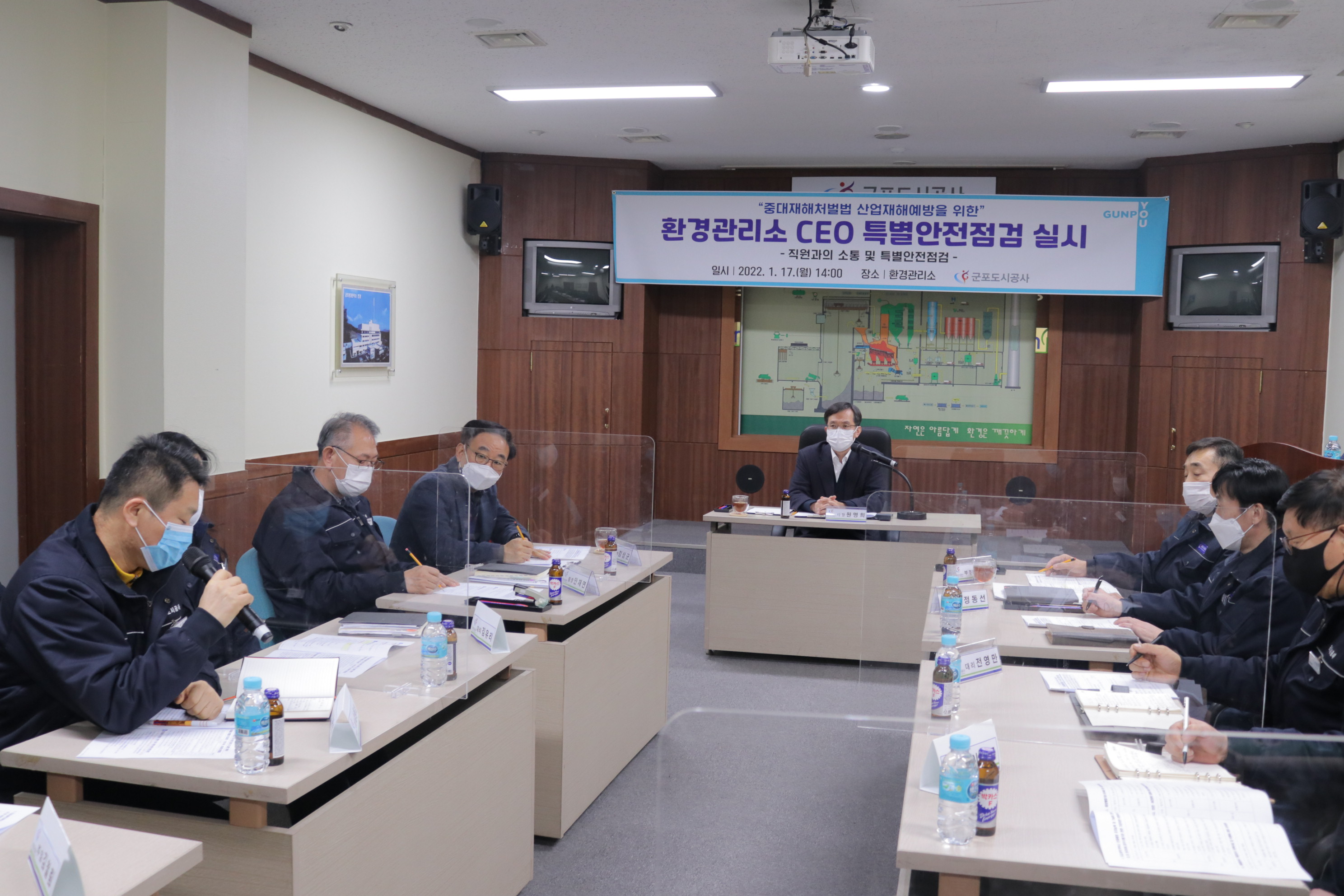 2022-01-17 환경관리소 CEO 특별안전점검 작성자 CS담당자 등록일자 2022년 1월 18일 15시 26분 55초 조회 373 2022년 1월 17일 중대재해처벌법 산업재해예방을 위한 환경관리소 CEO 특별안전전검 사진1.JPG [ Size : 1MB , Down : 107 ] 미리보기 다운로드 사진2.JPG [ Size : 952.4KB , Down : 93 ] 미리보기 다운로드 사진3.JPG [ Size : 739.07KB , Down : 102 ] 미리보기 다운로드 사진4.JPG [ Size : 941.01KB , Down : 94 ] 미리보기 다운로드 사진5.JPG [ Size : 905.3KB , Down : 95 ] 미리보기 다운로드 목록보기