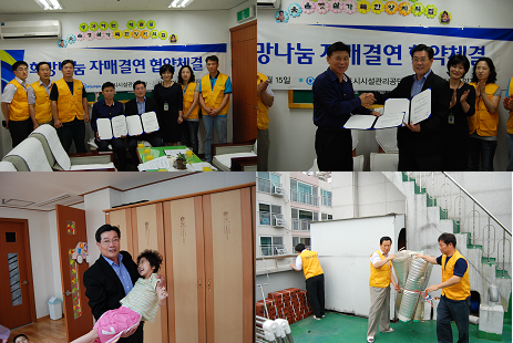그 동안 장애인들을 위해 시설의 안전점검을 수시로 해주시던 군포시시설관리공단과 우리 시설이 자원봉사활동 자매결연 협약식을 체결한 것입니다.