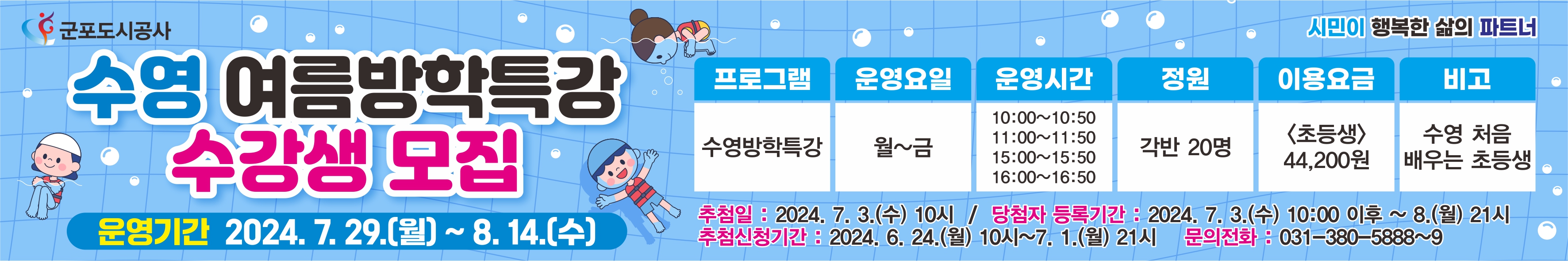 체육관리부 [부곡체육시설] 2024년 수영 여름방학특강 수강생 모집