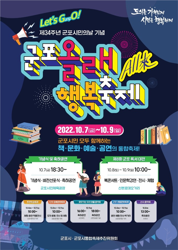 2 제34회 군포시민의날을 기념하여 축하공연 및 하반기 축제를 통합하여 아래와 같이 운영하오니 지역 주민들의 많은참여 부탁드립니다.