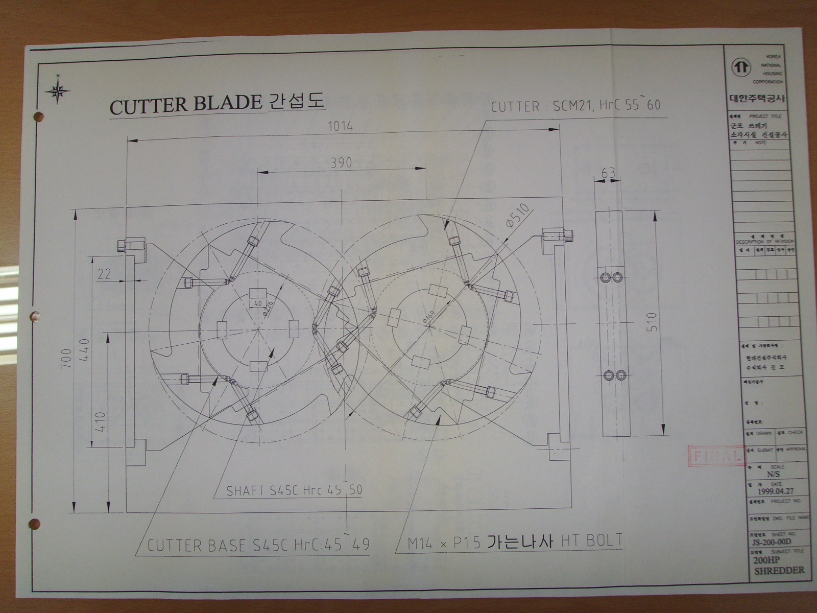 [입찰 공고] 파쇄기 Cutter Blade 제작구매