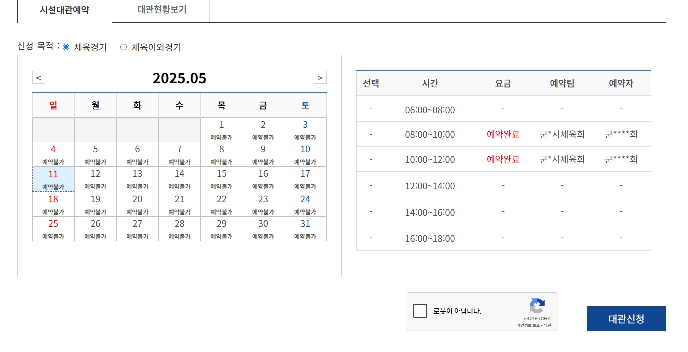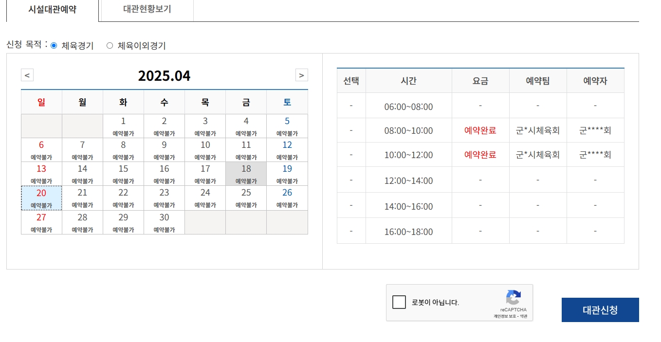 답변 : 4월 13일 일요일부터 시민체육광장 축구장 오전 8-10시, 10-12시 타임 대관불가 말이 되나요?