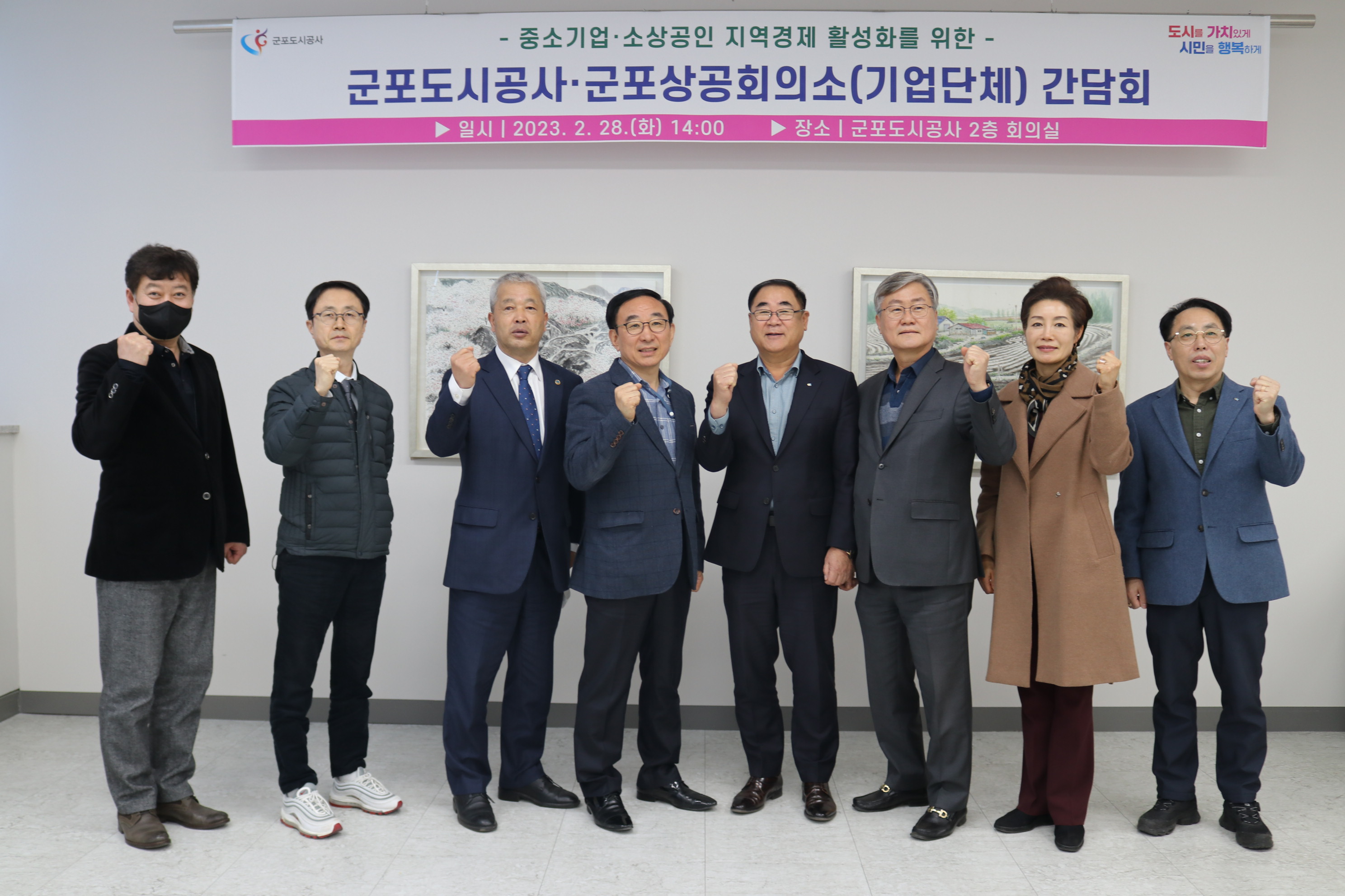 2023-02-28 군포도시공사-군포상공회의소 간담회 작성자 CS담당자 등록일자 2023년 3월 30일 10시 33분 26초 조회 314 군포도시공사는 2월 28일 지역경제 활성화를 위한 <군포도시공사-군포상공회의소(기업단체) 간담회>를 개최하였습니다.군포상공회의소, 군포경영인협의회, 군포여성경영인협의회, 군포소상공인협의회가 함께 참여하여 고물가,공공요금 인상 등으로 어려움을 겪고 있는 소상공인분들의 애로사항을 청취하고 지역상권 활성화를 위한 2023년 상반기 주요 구매 추진 계획 등에 대해의견을 나누는 시간을 가졌습니다. IMG_6579.JPG [ Size : 791.08KB , Down : 149 ] 미리보기 다운로드 IMG_6573.JPG [ Size : 922.83KB , Down : 149 ] 미리보기 다운로드 IMG_6569.JPG [ Size : 795.07KB , Down : 143 ] 미리보기 다운로드 IMG_6564.JPG [ Size : 599.86KB , Down : 142 ] 미리보기 다운로드 목록보기