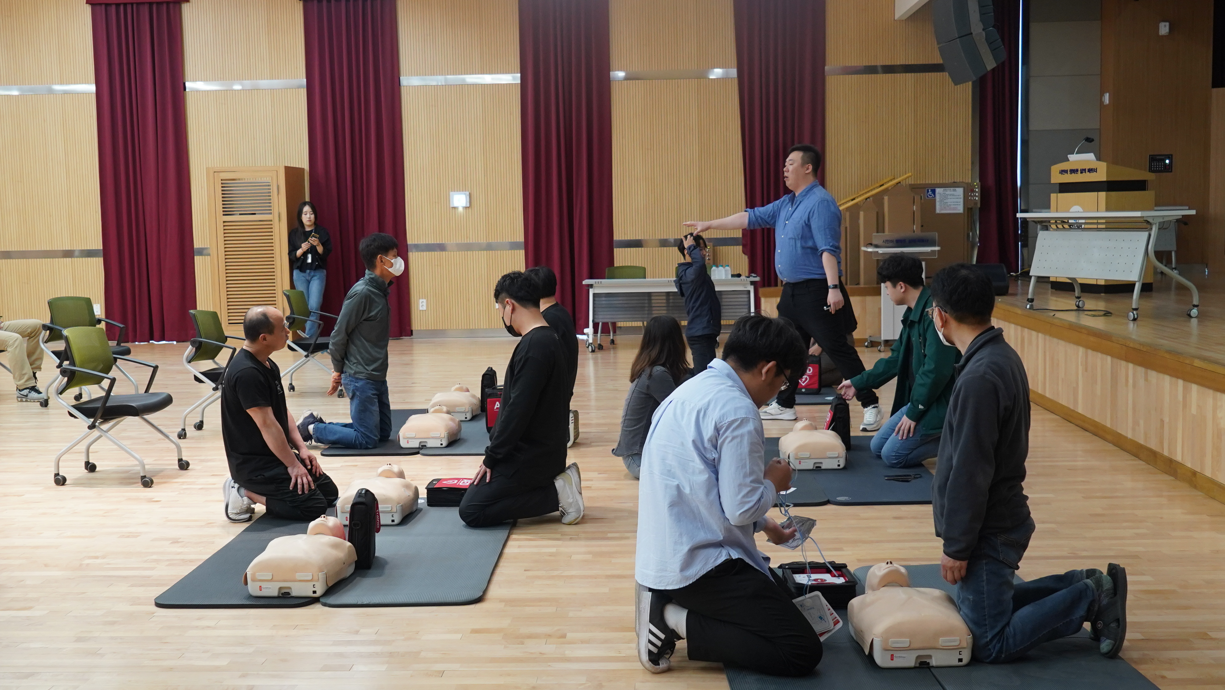 2023-05-04 심폐소생술 교육 실시 작성자 CS담당자 등록일자 2023년 5월 15일 10시 46분 19초 조회 356 군포도시공사, 보건소와 함께하는 심폐소생술 교육 실시- 응급상황 대처와 4분의 골든타임 확보 - 군포도시공사는 매월 4일 안전점검의 날과 더불어 군포시보건소와 함께 심폐소생술 및 자동심장충격기(AED) 교육을 실시하였습니다. DSC08023.JPG [ Size : 2.59MB , Down : 158 ] 미리보기 다운로드 DSC08041.JPG [ Size : 3.35MB , Down : 152 ] 미리보기 다운로드 DSC08069.JPG [ Size : 2.98MB , Down : 149 ] 미리보기 다운로드 DSC08084.JPG [ Size : 3.08MB , Down : 163 ] 미리보기 다운로드 목록보기