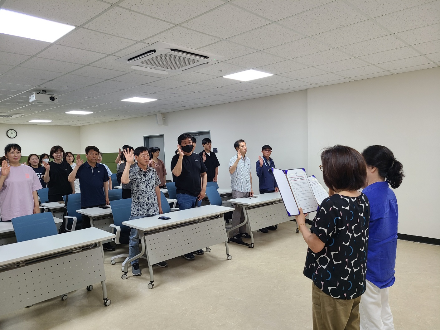 친절교육 이후 진행된 결의대회에서는 시민의 소리에 귀 기울여 시민복지 향상에 선도적인 역할을 하겠다는 각오를 다짐하는 시간을 가졌습니다.