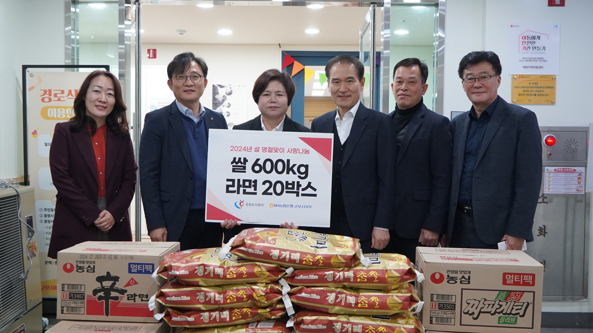 2024-02-07 설 명절맞이 쌀 나눔 행사 작성자 CS담당자 등록일자 2024년 7월 3일 15시 32분 18초 조회 231 <군포도시공사-NH농협군포시지부>설 명절맞이‘이웃사랑 나눔경영’실천군포도시공사는 설 명절을 맞아 NH농협은행 군포시지부와 함께‘매화지역아동센터’와 ‘솔 복지재단’에 각 쌀 30포(300kg)씩 총 쌀 60포(600kg)를 전달하였습니다. 426163210_412777404626501_5074212061521221602_n.jpg [ Size : 511.17KB , Down : 143 ] 미리보기 다운로드 426073313_412777381293170_5689788696579538885_n.jpg [ Size : 509.1KB , Down : 152 ] 미리보기 다운로드 목록보기