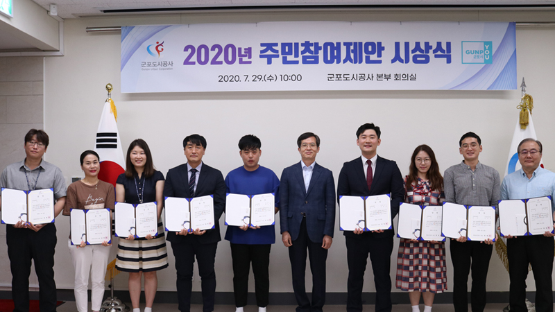 5월 1일부터 5월 31일까지 1달간 공모했던 '군포도시공사 주민참여제안 공모전'의 시상식이 있던 6월 29일. 많은 시상자 분들이 참여해주셨어요.