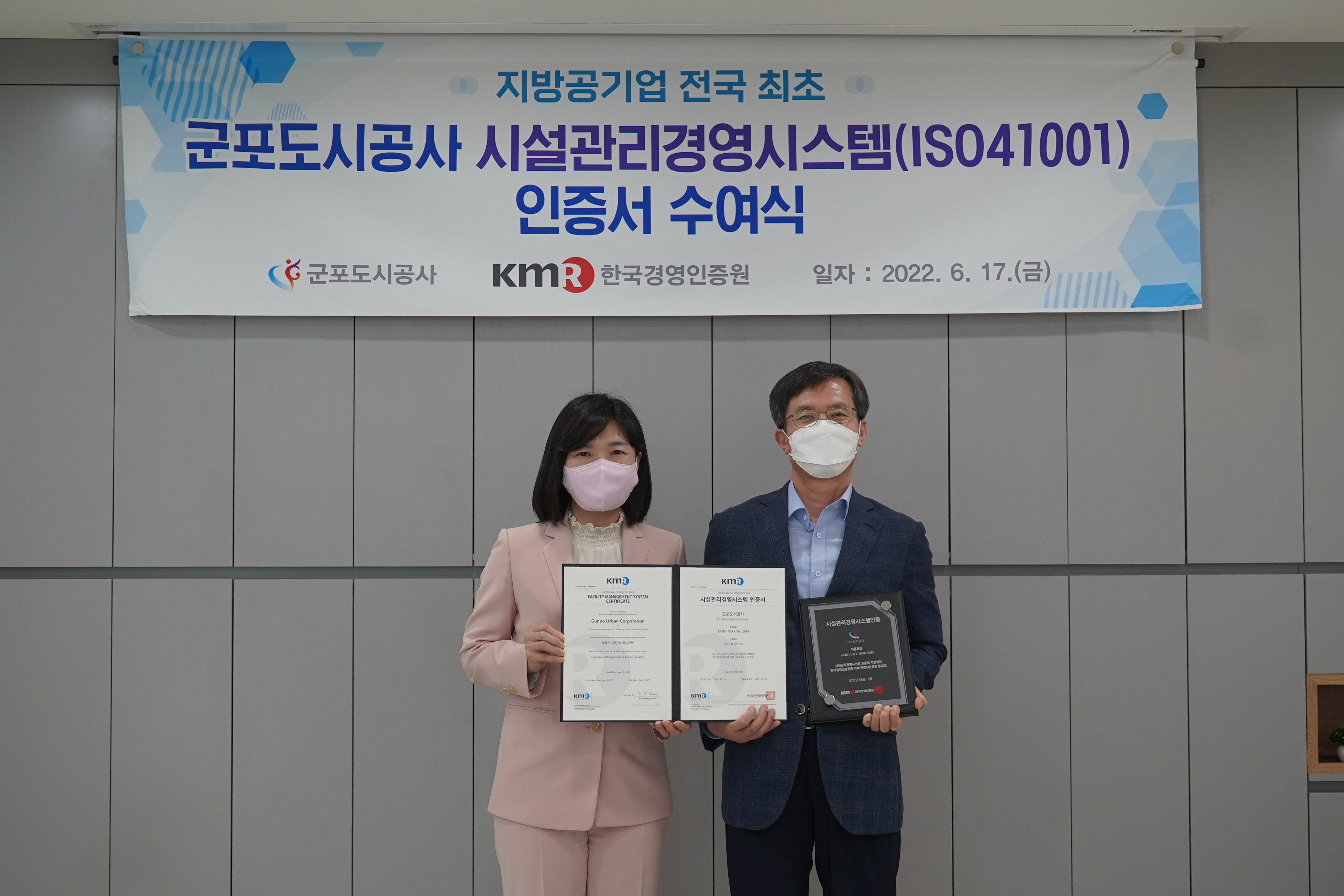 2022-06-17 군포도시공사, 지방공기업최초 ISO41001(시설관리경영시스템) 인증 작성자 CS담당자 등록일자 2022년 6월 20일 10시 19분 2초 조회 424 2022년 6월 17일군포도시공사, 지방공기업최초 ISO41001(시설관리경영시스템) 인증 ISO 41001(시설관리경영시스템)이란 시설관리(FM)시스템에 관한 국제표준으로써 건물과 시설이 주어진 기능을 원활히 수행하도록 일관성 있고 효과적인 시설관리를 통해 시설관리의 운영 향상과 안전한 구조를 만드는 것에 대한 인증입니다! 사진1.JPG [ Size : 2.71MB , Down : 102 ] 미리보기 다운로드 사진2.JPG [ Size : 2.29MB , Down : 104 ] 미리보기 다운로드 사진3.JPG [ Size : 2.3MB , Down : 92 ] 미리보기 다운로드 사진4.JPG [ Size : 2.75MB , Down : 99 ] 미리보기 다운로드 목록보기