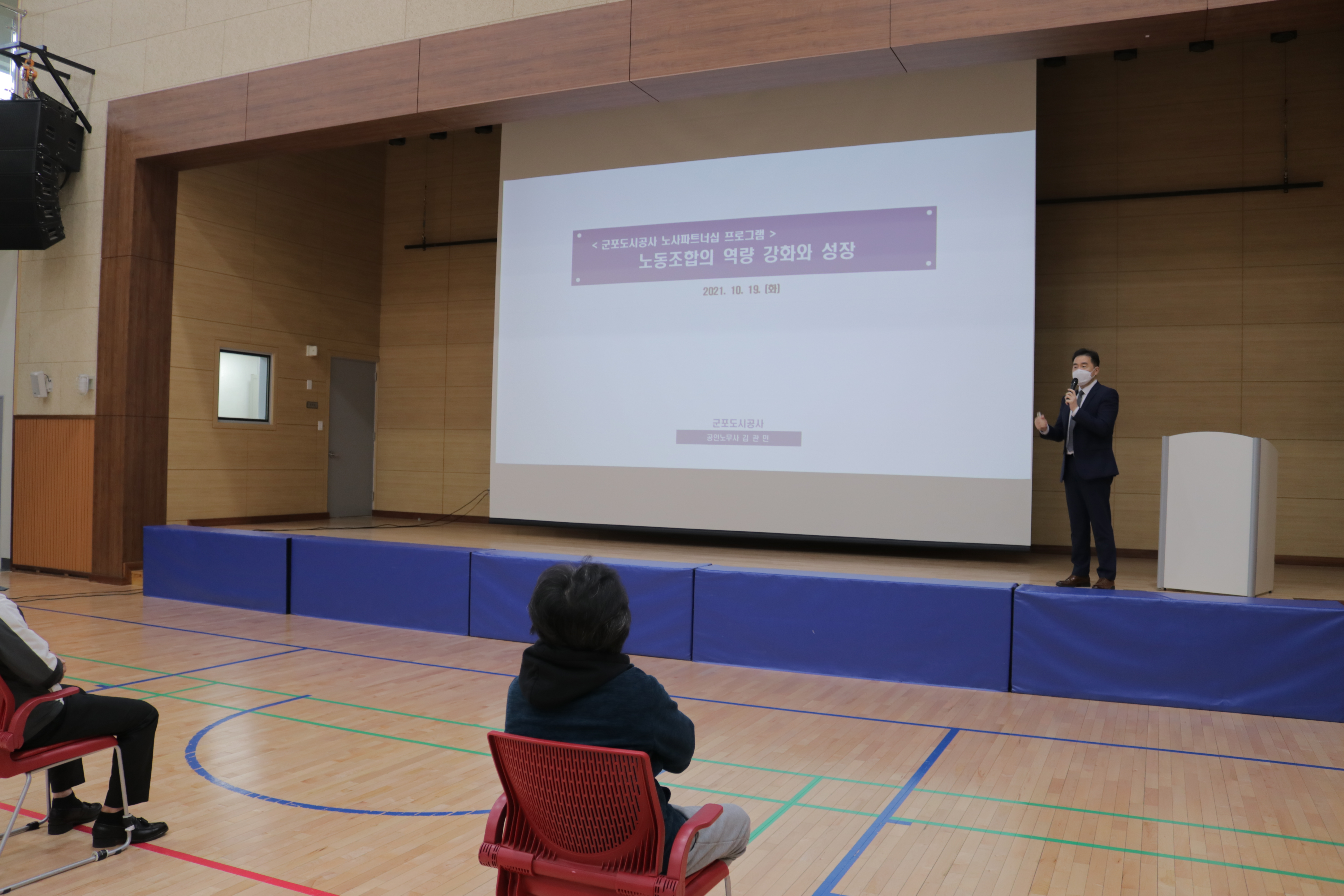 2021-10-19 제4차 노사분야 전문가 초빙교육 작성자 CS담당자 등록일자 2021년 10월 20일 10시 22분 16초 조회 455 2021년 10월 19일노사파트너십프로그램 제4차 노사분야 전문가 초빙교육2021년 노사파트너십 프로그램 추진사업의 일환으로제4차 노사분야 전문가 교육을 실시했습니다!주제는!!노동조합의 역량 강화와 성장 ♣공인노무사 전관민 전문가님께서 열정적으로 강의를 해주셨어요!오늘도 사회적 거리두기를 하며 강의에 집중하는 군포도시공사 임직원들입니다 ★ 사진 1.JPG [ Size : 4.5MB , Down : 103 ] 미리보기 다운로드 사진 2.JPG [ Size : 4.78MB , Down : 92 ] 미리보기 다운로드 사진 3.JPG [ Size : 5.07MB , Down : 99 ] 미리보기 다운로드 사진 4.JPG [ Size : 5.69MB , Down : 100 ] 미리보기 다운로드 목록보기