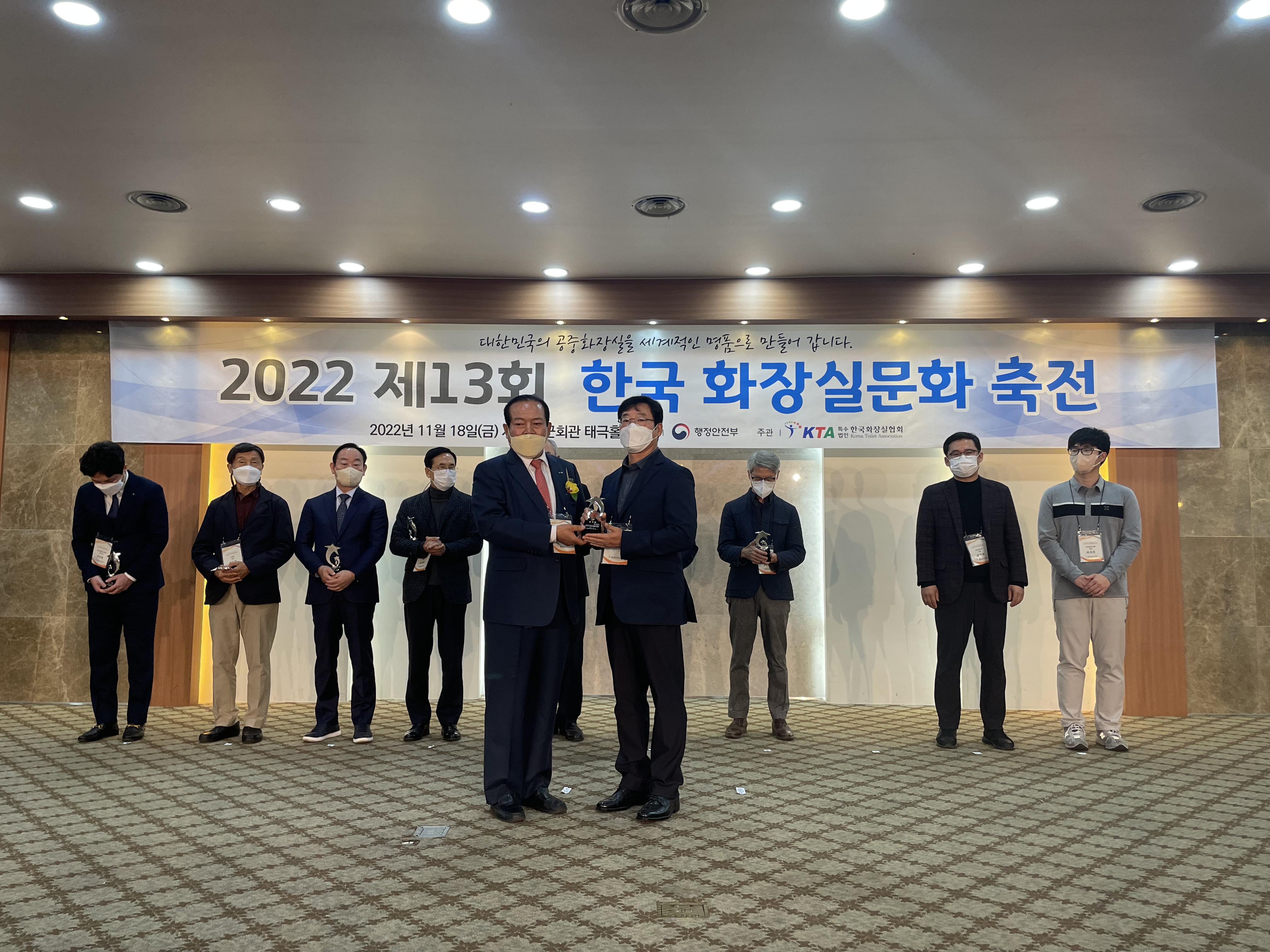2022-11-18 군포도시공사 2022 화장실문화품질인증(TCQ) 최우수 기관상 수상 작성자 CS담당자 등록일자 2023년 1월 3일 15시 19분 13초 조회 237 군포도시공사 '2022 화장실문화품질인증(TCQ) 최우수 기관상' 수상!공사는 지난 11월 18일 행정안전부가 주최하고 한국화장실협회에서 주관하는제13회 한국 화장실문화 축전에서 '화장실문화품질인증(TCQ) 최우수 기관상'을 수상했습니다.공사는 앞으로도 사용자의 편의와 안전을 세심하게 고려한 화장실 개선에 앞장서겠습니다. IMG_0295.JPG [ Size : 4.77MB , Down : 62 ] 미리보기 다운로드 IMG_0311.JPG [ Size : 5.2MB , Down : 63 ] 미리보기 다운로드 IMG_0385.JPG [ Size : 4.26MB , Down : 61 ] 미리보기 다운로드 목록보기