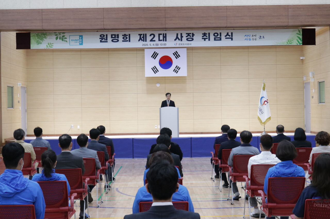 2020년 5월 4일, 군포도시공사 제2대 사장으로 LH한국토지주택공사 경기지역 본부장을 지낸 원명희 사장님의 취임식이 있었습니다.