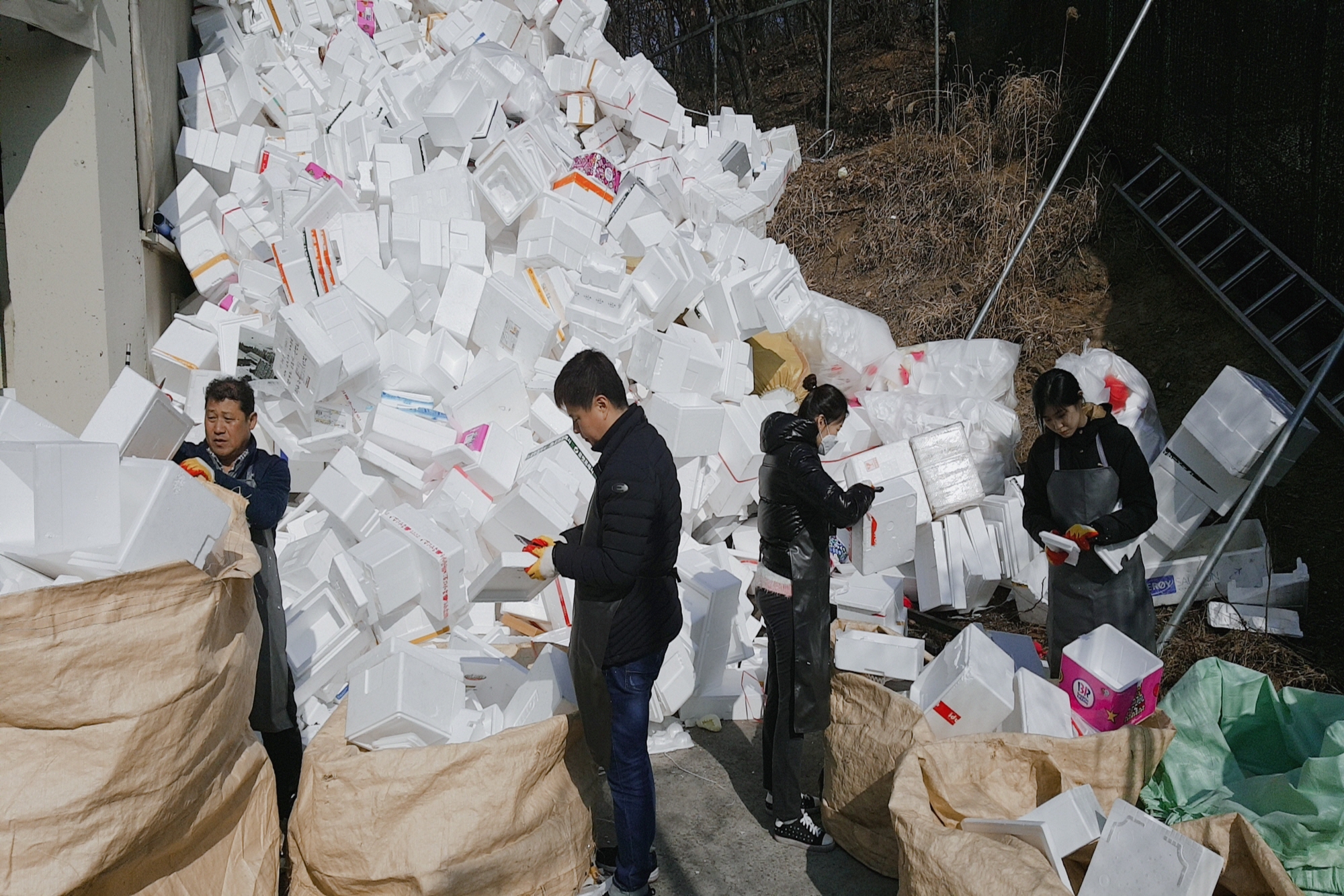 명절 특수효과로 온라인 주문 및 택배물량 증가로 다량의 스티로폼이 유입되었지요.