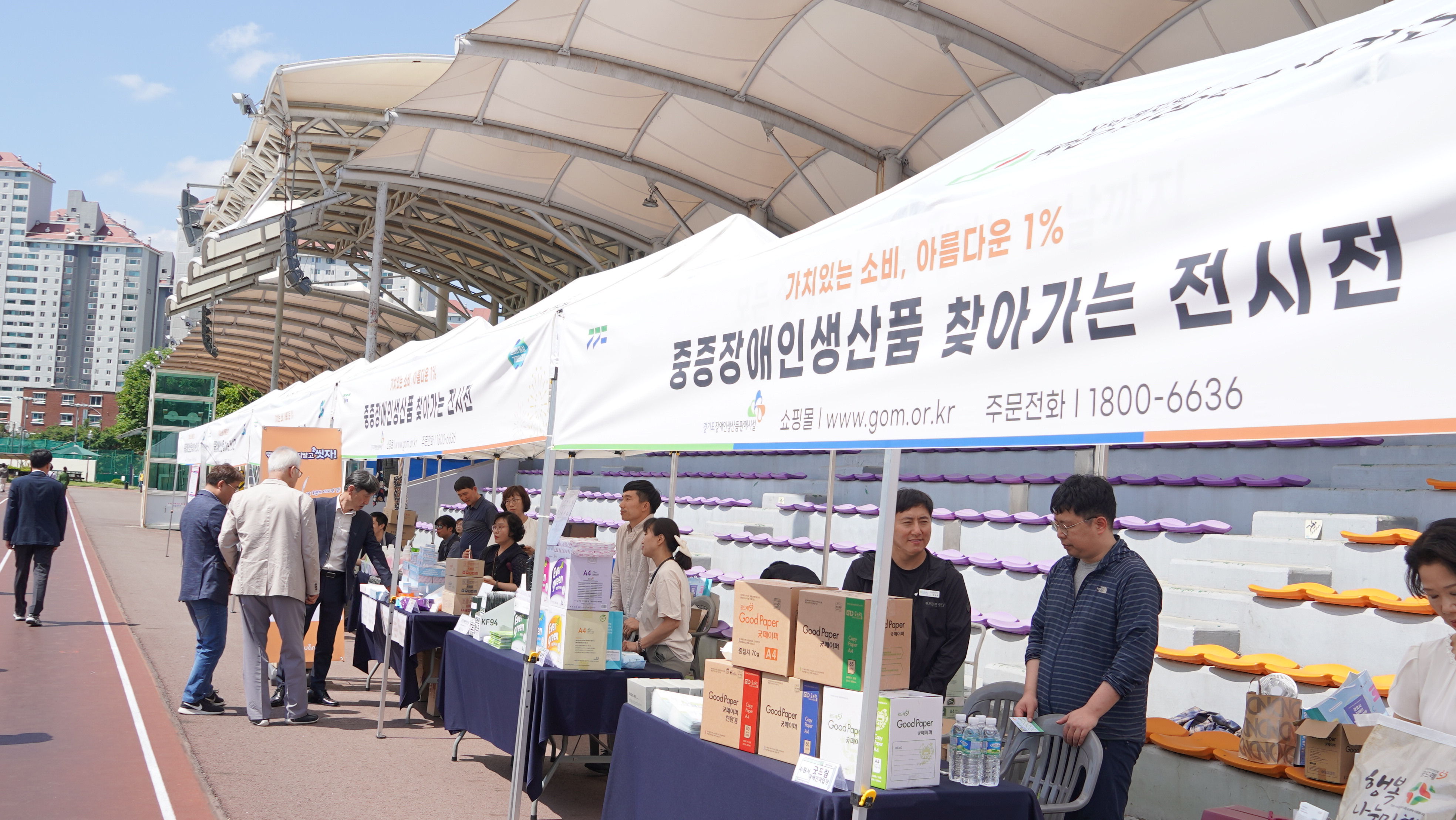 2023-05-19 중증장애인생산품 '찾아가는 전시전' 개최 작성자 CS담당자 등록일자 2023년 5월 23일 16시 28분 57초 조회 347 중증장애인생산품‘찾아가는 전시전’개최군포도시공사와 경기도장애인생산품판매시설은 장애인생산품의 구매인식 개선과 구매 활성화를 위해 지난 19일 군포시민체육광장에서 ‘장애인생산품 찾아가는 전시전’을 개최하였습니다. DSC08580.JPG [ Size : 3.77MB , Down : 150 ] 미리보기 다운로드 DSC08510.JPG [ Size : 3.18MB , Down : 157 ] 미리보기 다운로드 DSC08523.JPG [ Size : 2.75MB , Down : 153 ] 미리보기 다운로드 DSC08562.JPG [ Size : 3.17MB , Down : 160 ] 미리보기 다운로드 DSC08527.JPG [ Size : 3.19MB , Down : 160 ] 미리보기 다운로드 목록보기