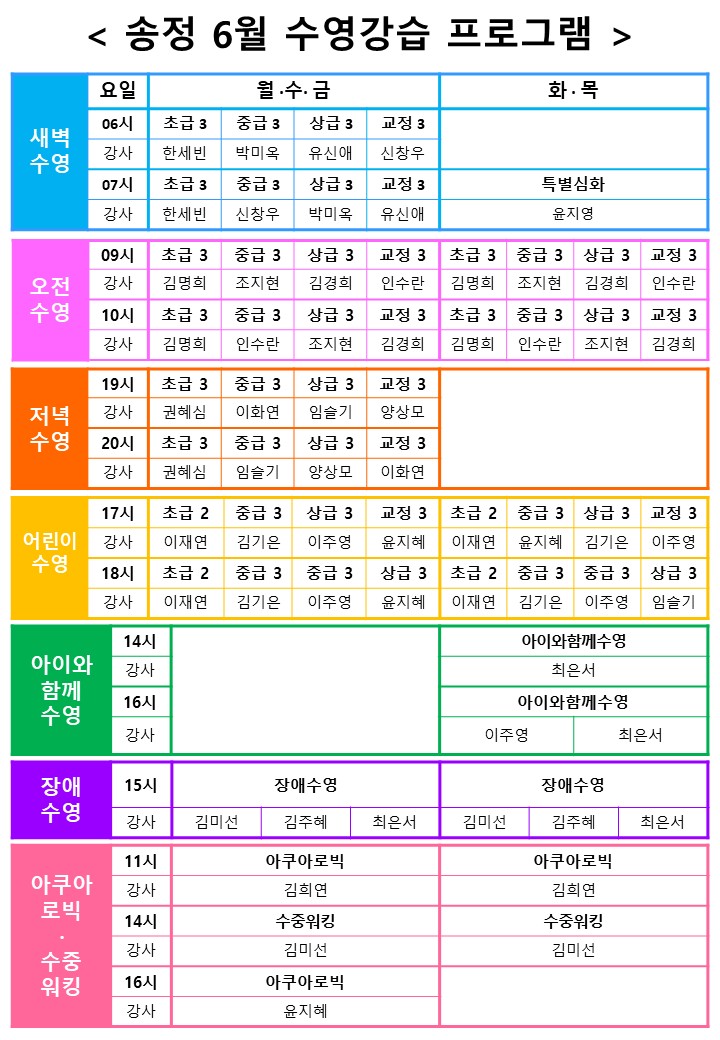 체육관리부 [송정복합체육센터] 2025년 6월 강습 프로그램 일정 및 회원모집 안내