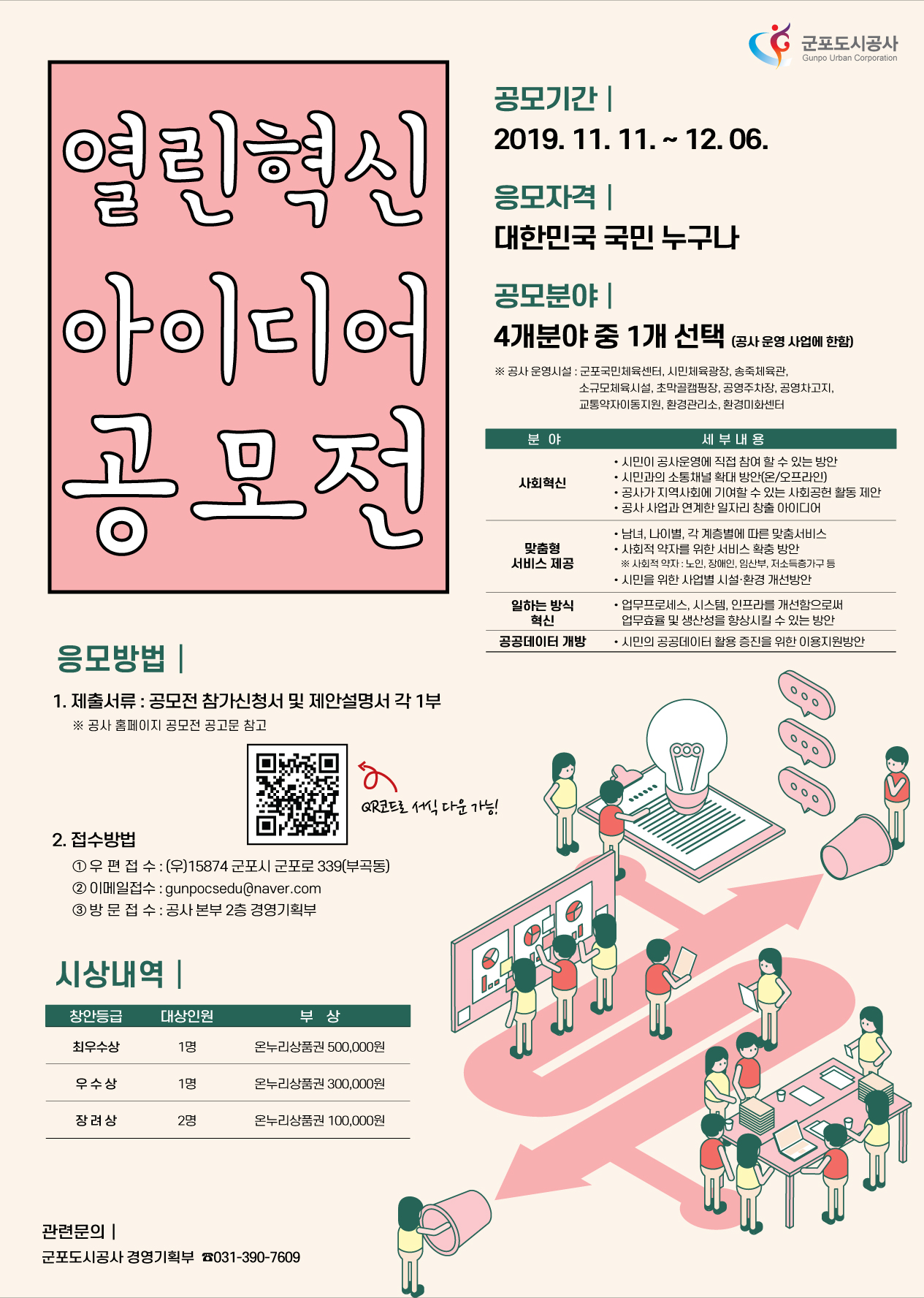 시민의 창의적인 의견과 고안을 장려 계발하고 공사 경영에 적극 반영하여 효율적으로 공사를 운영하고자 다음과 같이 제안을 공모합니다.