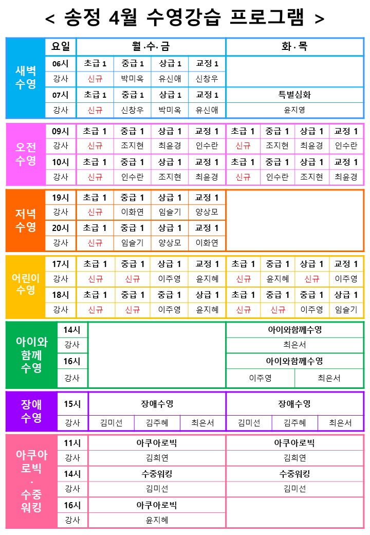 체육관리부 [송정복합체육센터] 2025년 4월 강습 프로그램 일정 및 회원모집 안내