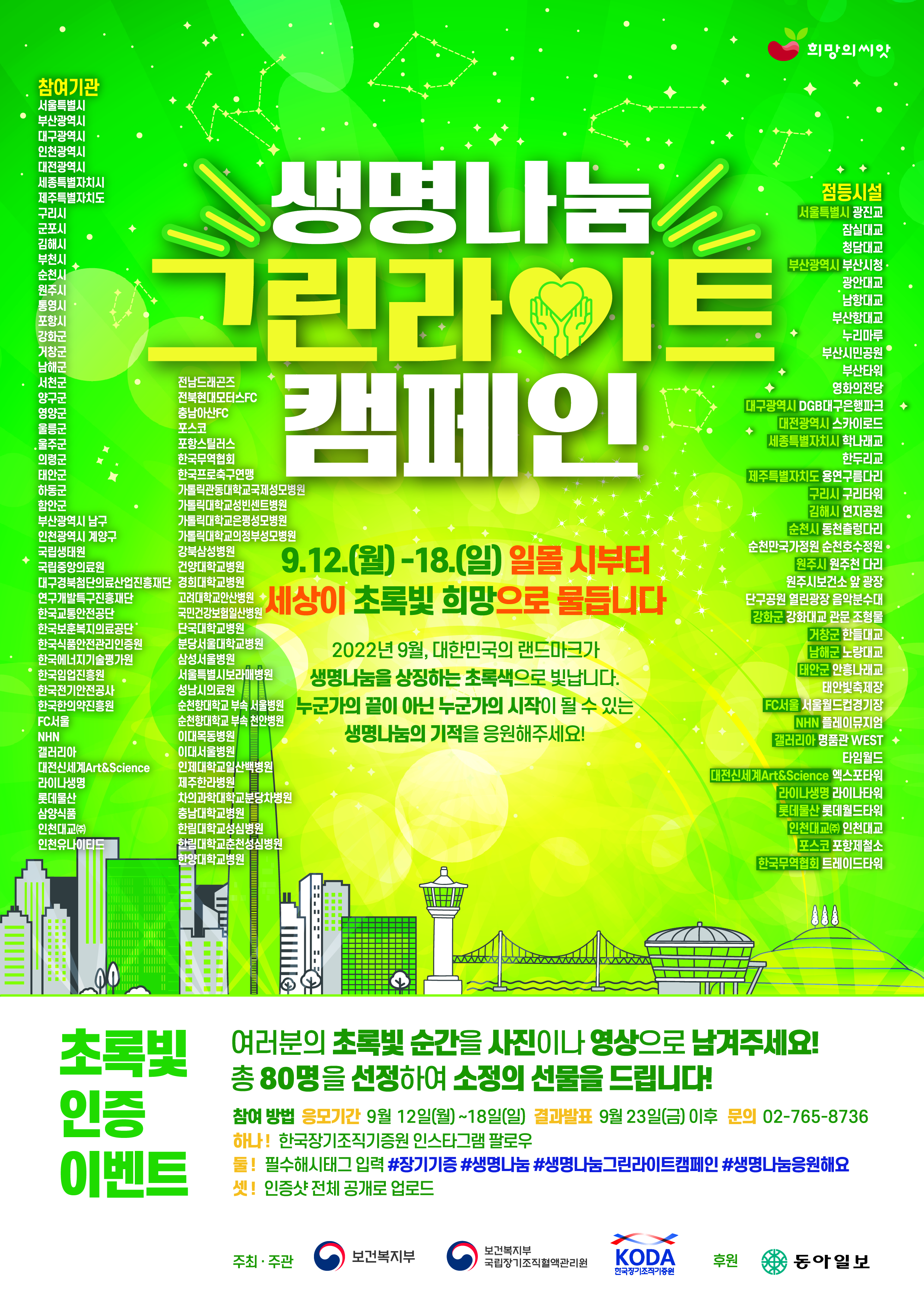 2022 생명나눔 그린라이트 캠페인을 다음과 같이 진행하오니, 많은 시민들의 참여 부탁드립니다.