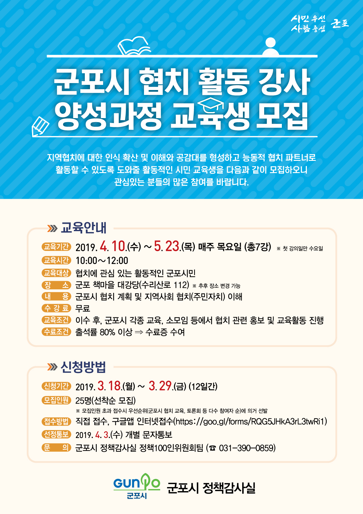 - 문 의 : 군포시 정책감사실 정책100인위원회팀 (☎ 031-390-0859)