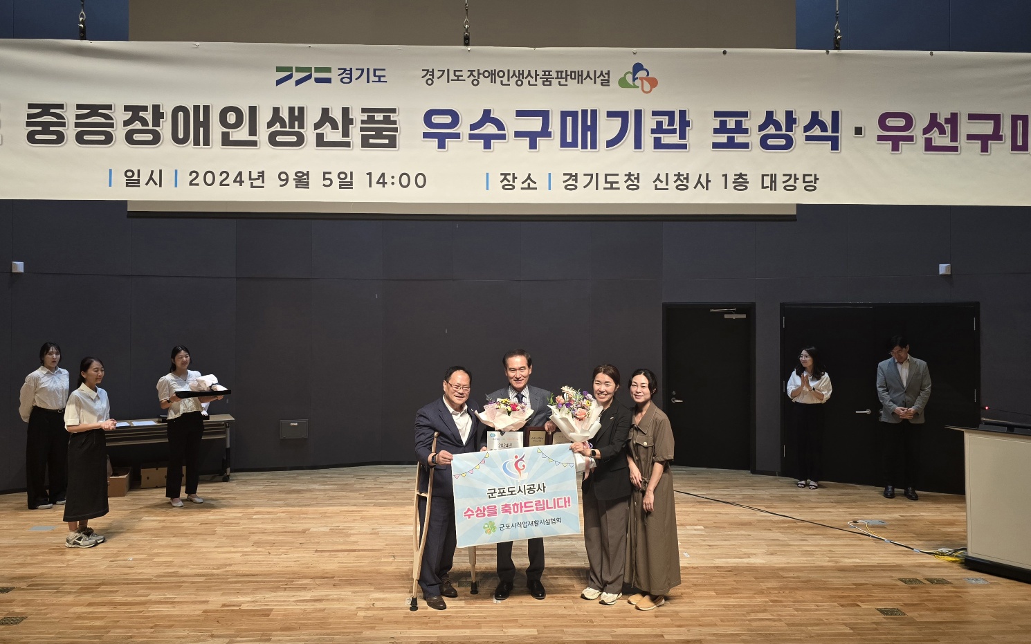 □ 군포도시공사(사장 배재국)는 지난 5일 경기도와 경기도장애인생산품판매시설에서 주관하는 ‘2024년 중증장애인생산품 구매실적 우수기관’으로 선정되어 ‘경기도지사 유공표창과 경기도의회의장 특별표창 ’을 수상했다.
