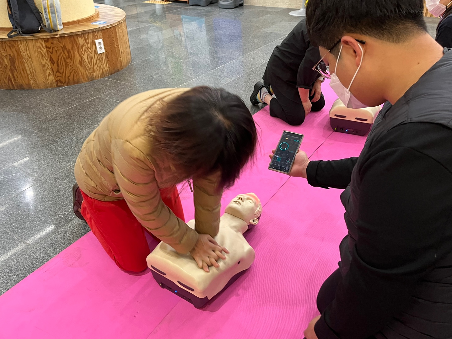 이번에 활용된 심폐소생술 마네킹은 우수연구개발 혁신제품(패스트 트랙Ⅰ)으로 가슴압박 시 심장에서 피가 방출되어 뇌로 흐르는 형상을 LED를 통해 재현하여 심장의 혈액이 뇌까지 전달되는 전 과정을 시각적으로 제공한다.
