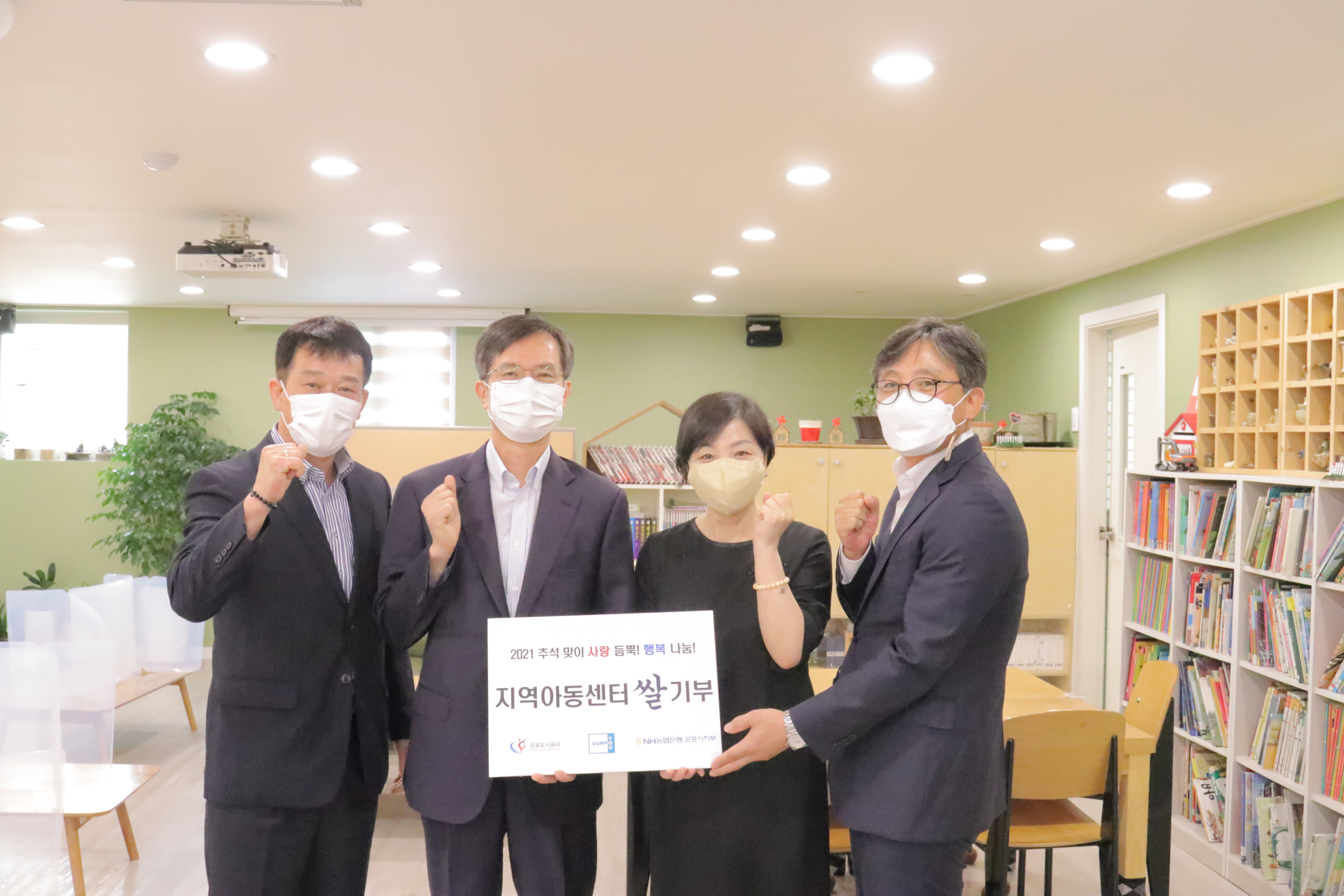 공사는 NH농협은행과 손을 맞잡고 코로나19 시기에도 아동 돌봄에 애쓰는 관내 지역아동센터 4개소를 선정하여 쌀 600kg을 전달하며 따뜻한 정을 나눴다.