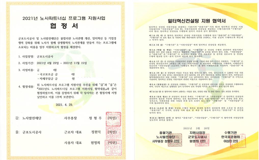 한편, 지난 3월에는 일하기 좋은 고용 문화 개선과 지속 가능한 경영발전 구현을 위해 노사발전재단과 ‘일터혁신 컨설팅 사업’ 수행을 위한 업무 협약을 체결했다.