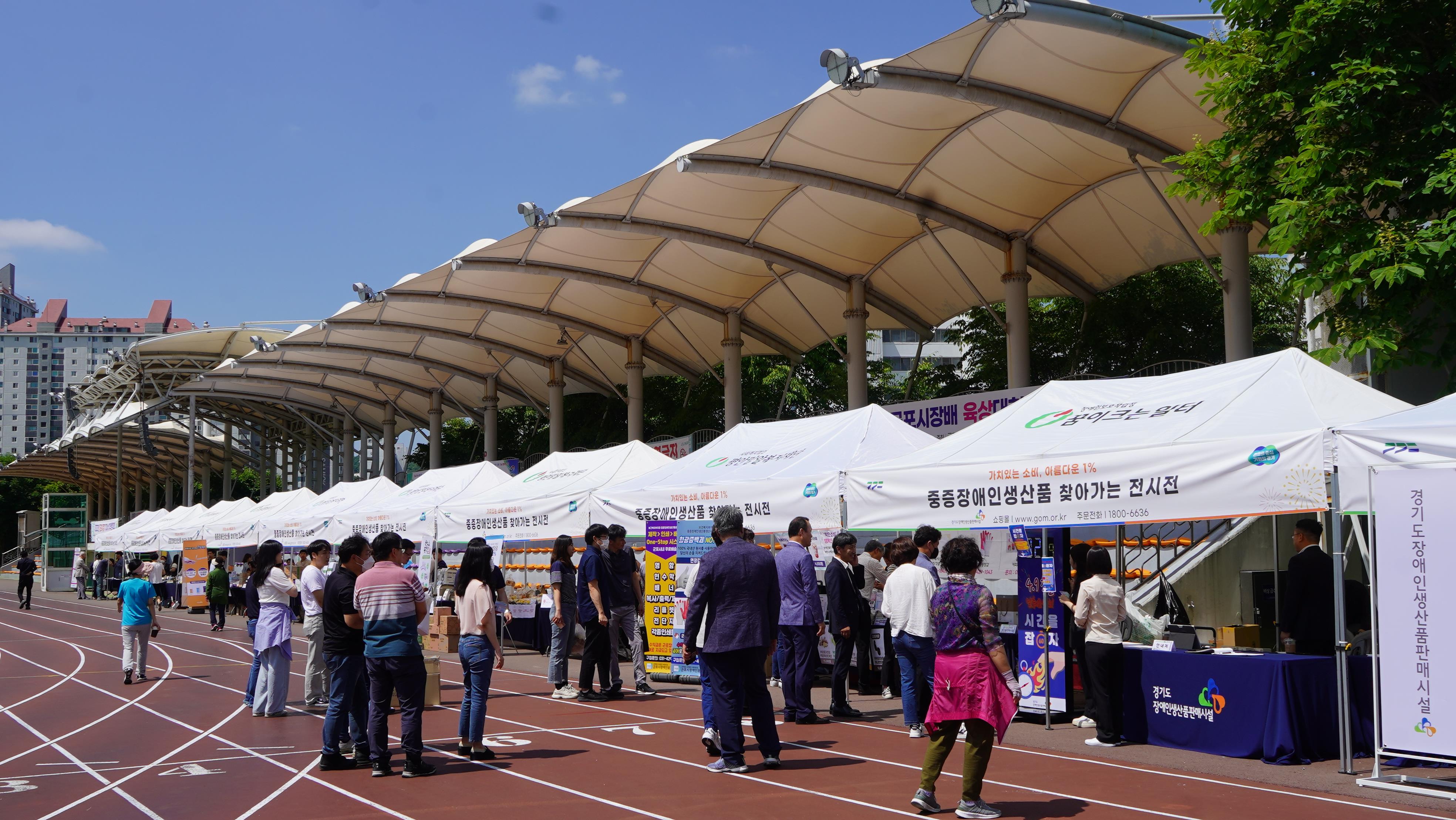 □ 이날 전시전은 군포시민체육광장을 이용하는 시민들이 직접 장애인생산품을 경험할 수 있는 장으로 마련됐으며, 경기도 및 군포시 관내 장애인직업재활시설에서 생산하는 장애인생산품(제과제빵, 화장지류, 견과류 등) 판매를 통하여 장애인생산품에 대한 인식 개선 및 구매 활성화를 도모하였다.