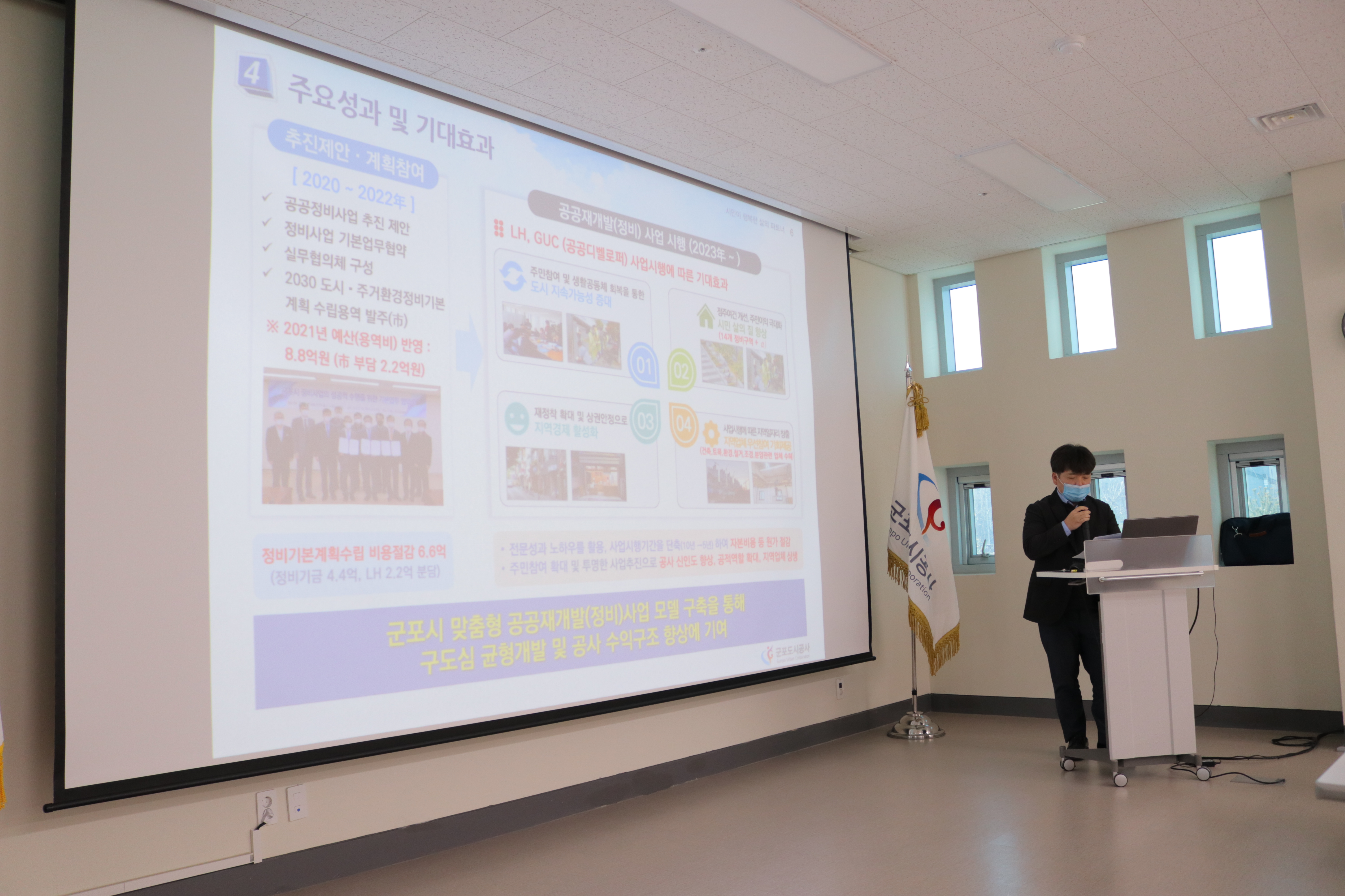 최종 심사를 통해 최우수 사례로는 군포시 정비사업을 위해 LH와 파트너십을 구축하여 군포시와 민관합동으로 재개발을 추진하는 개발사업부의 ‘공공 재개발 파트너십 구축’이 선정되었으며, 각 단체의 전문성과 노하우를 활용해 사업 시행 기간 단축, 주민참여 확대 및 투명한 사업추진으로 주민 이익을 극대화하는 등의 효과가 기대된다.
