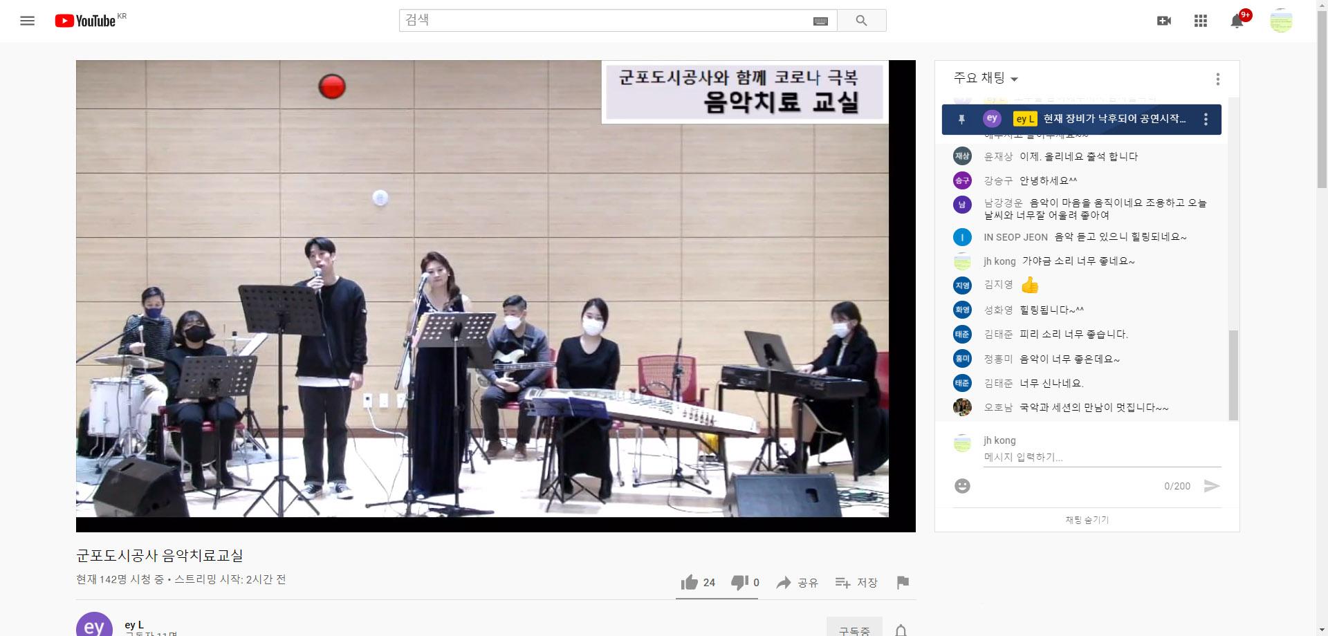 “코로나19 우울증 타파, 음악치료교실”은 군포시정신건강복지센터와 협업하여 계속된 사회적 거리두기로 인한 고립감이 지속되면서 크게 늘어난 우울감 치료를 위해 라이브 방송을 진행하였으며, 직원, 시민, 유관기관, 사회배려계층 등 총 316명이 참여해 큰 호응을 얻었다.