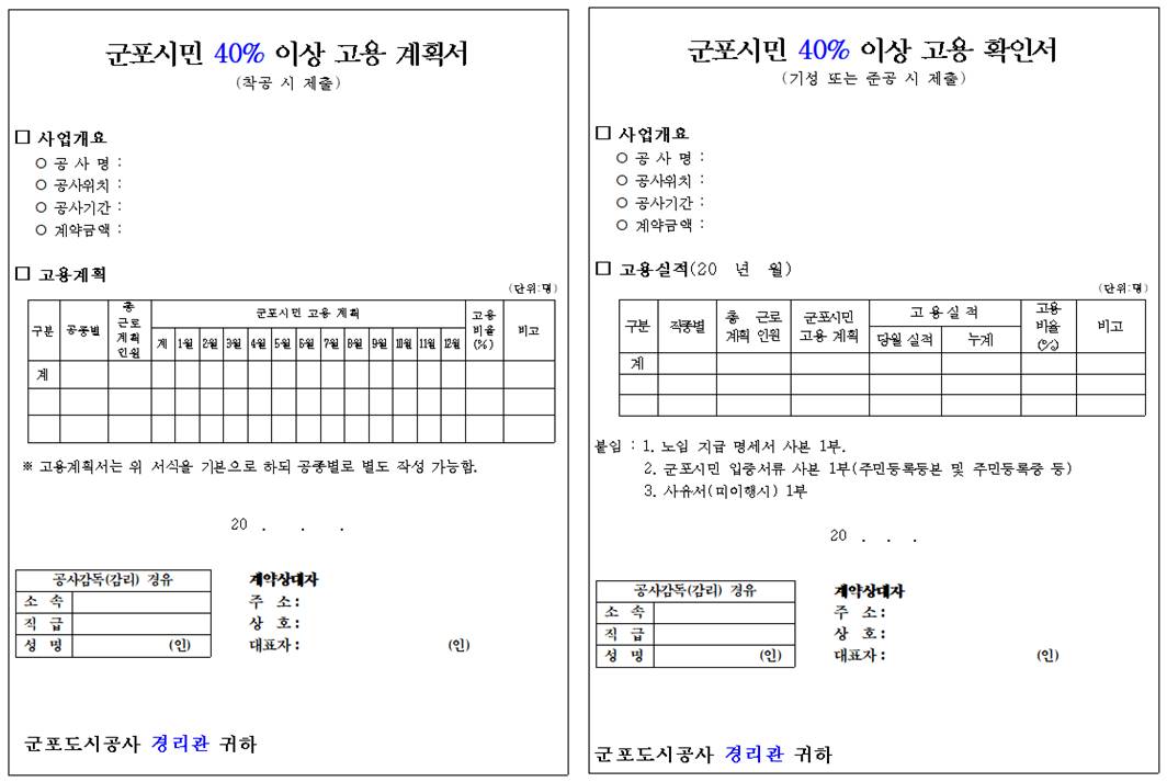 해당 업체는 착공계 및 준공계 제출 시 관련 서류를 제출해야 하며, 취업 취약계층과 시니어클럽 등 군포시민을 우선 고용하도록 권장할 계획이다.