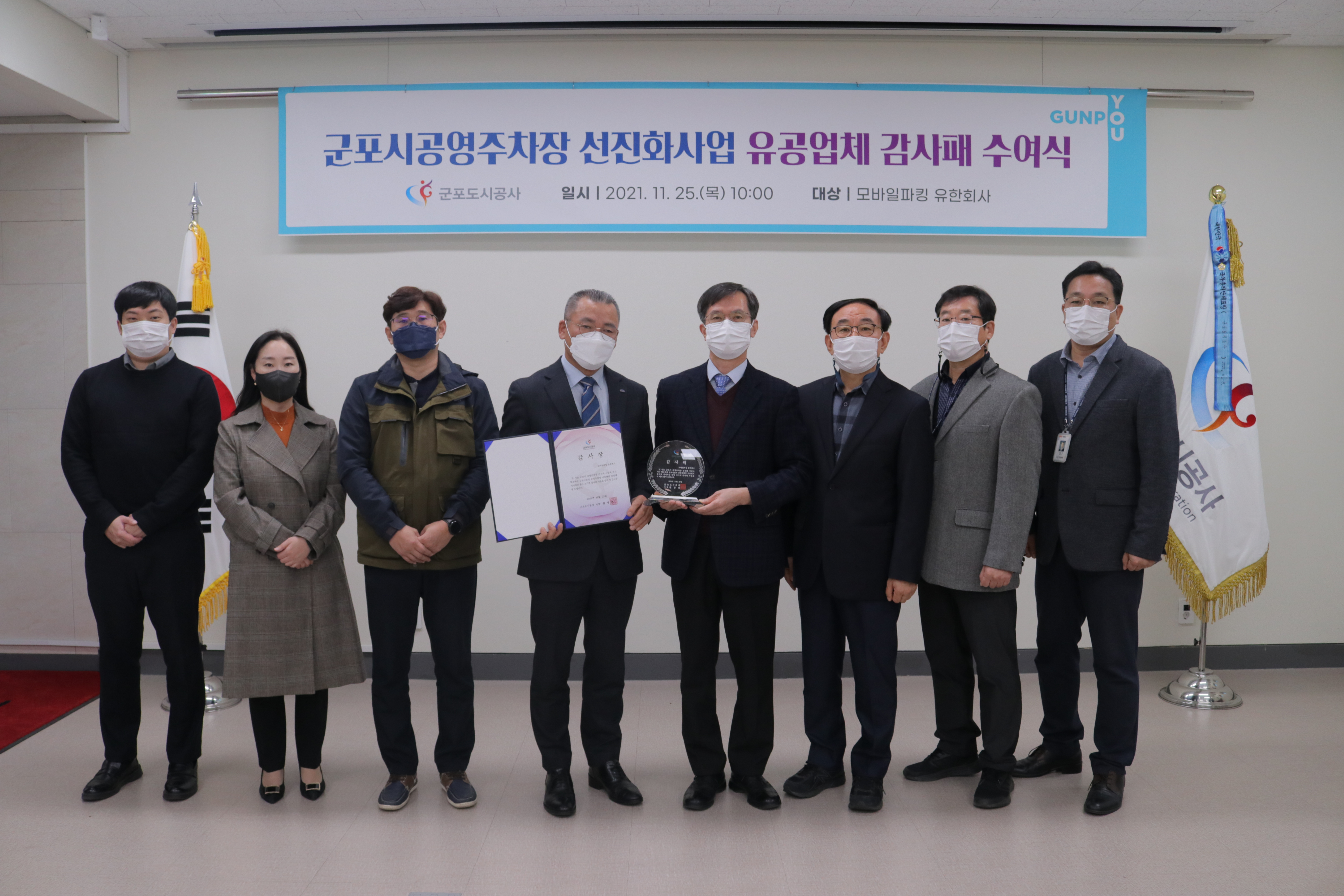 2021-11-25 군포시공영주차장 선진화사업 유공업체 감사패 수여식 작성자 CS담당자 등록일자 2021년 11월 25일 11시 2분 8초 조회 349 2021년 11월 25일군포시공영주차장 선진화사업 유공업체 감사패 수여식 사진 1.JPG [ Size : 5.43MB , Down : 80 ] 미리보기 다운로드 사진2.JPG [ Size : 5.09MB , Down : 74 ] 미리보기 다운로드 사진3.JPG [ Size : 5.35MB , Down : 74 ] 미리보기 다운로드 사진4.JPG [ Size : 5.56MB , Down : 74 ] 미리보기 다운로드 목록보기