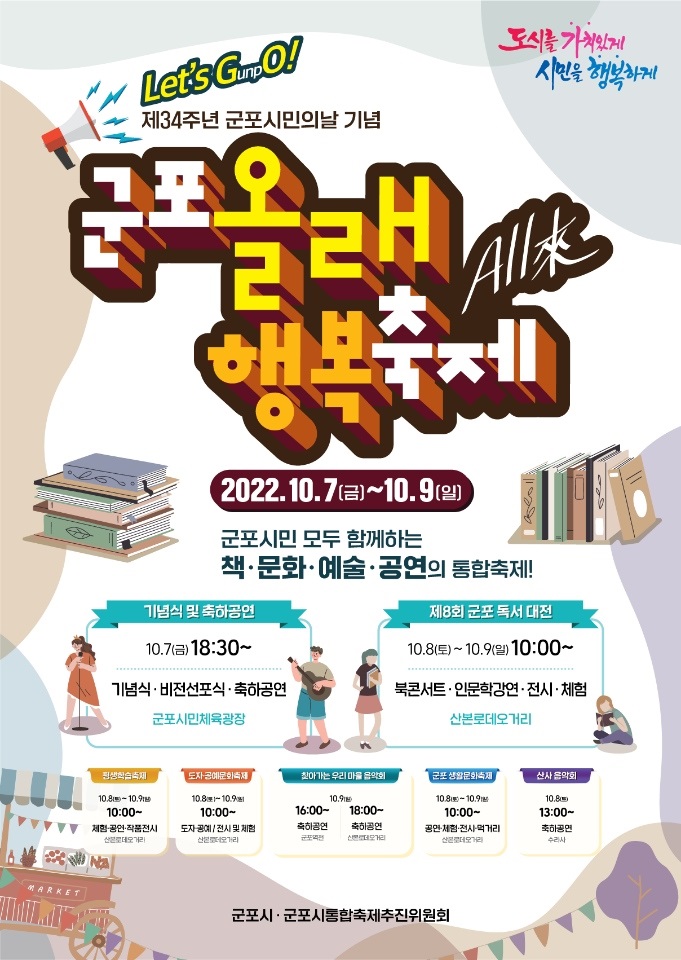 2 제34회 군포시민의날을 기념하여 축하공연 및 하반기 축제를 통합하여 아래와 같이 운영하오니 지역 주민들의 많은참여 부탁드립니다.