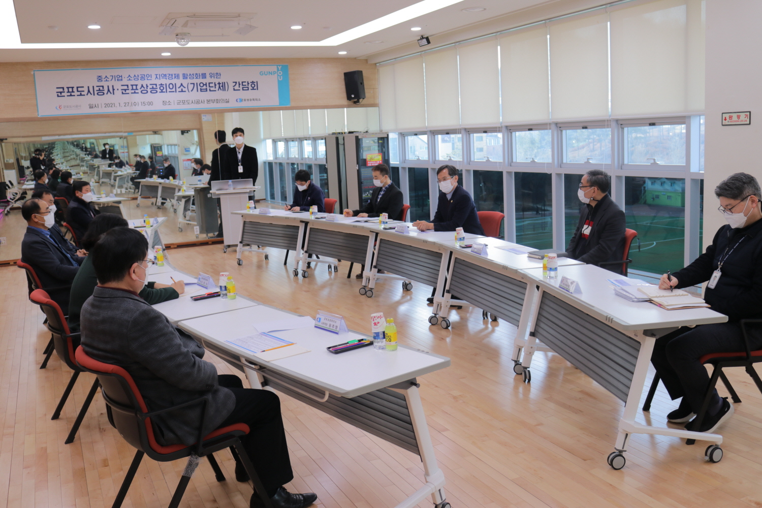 군포도시공사(사장 원명희)는 지난 27일 지역경제 활성화와 코로나19로 인해 어려움을 겪고 있는 중소기업과 소상공인을 돕고자 관내 기업단체와 간담회를 진행했다고 밝혔다.