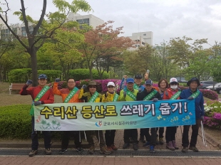 수리산 구석구석에 있는 담배꽁초, 휴지 등을 주우면서