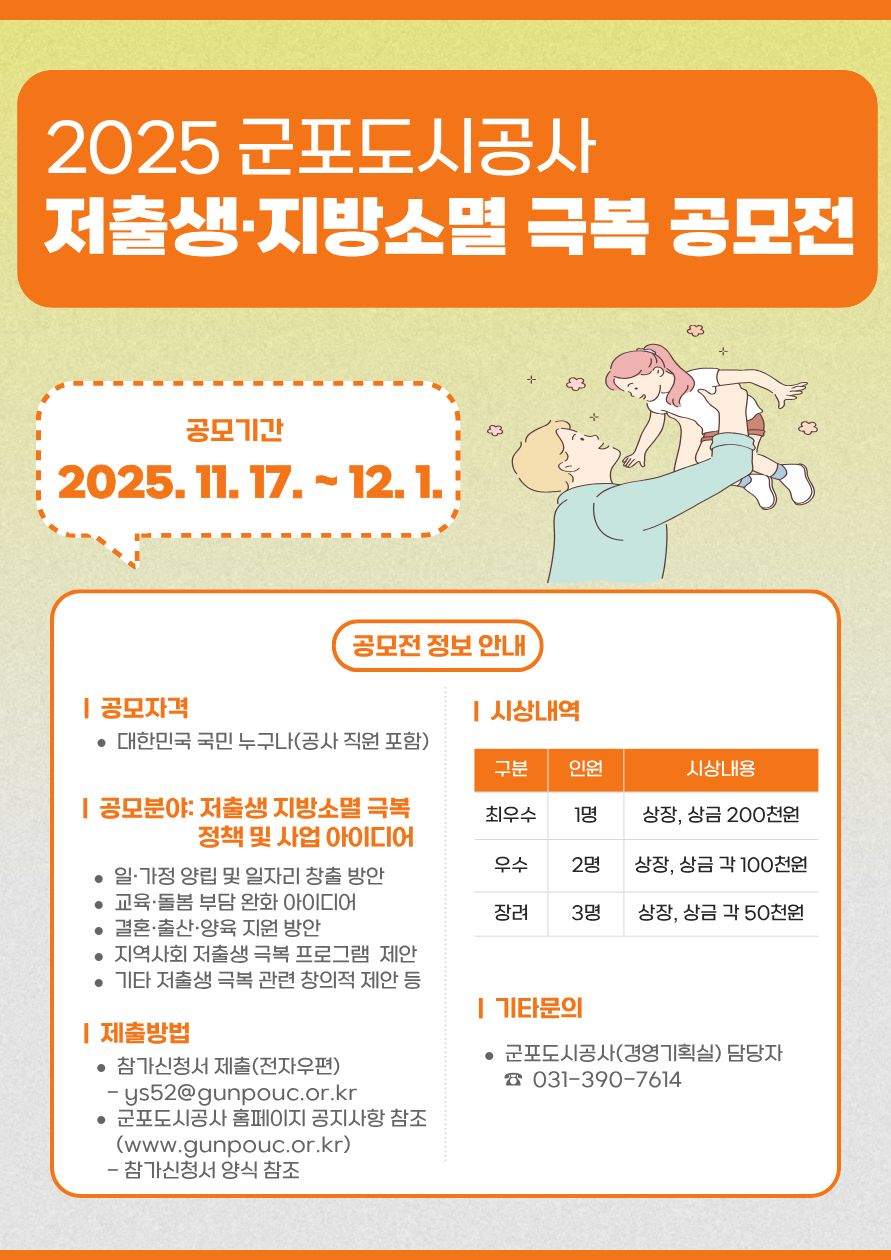 본사 2025년 군포도시공사 저출생·지방소멸 극복 공모전 공고