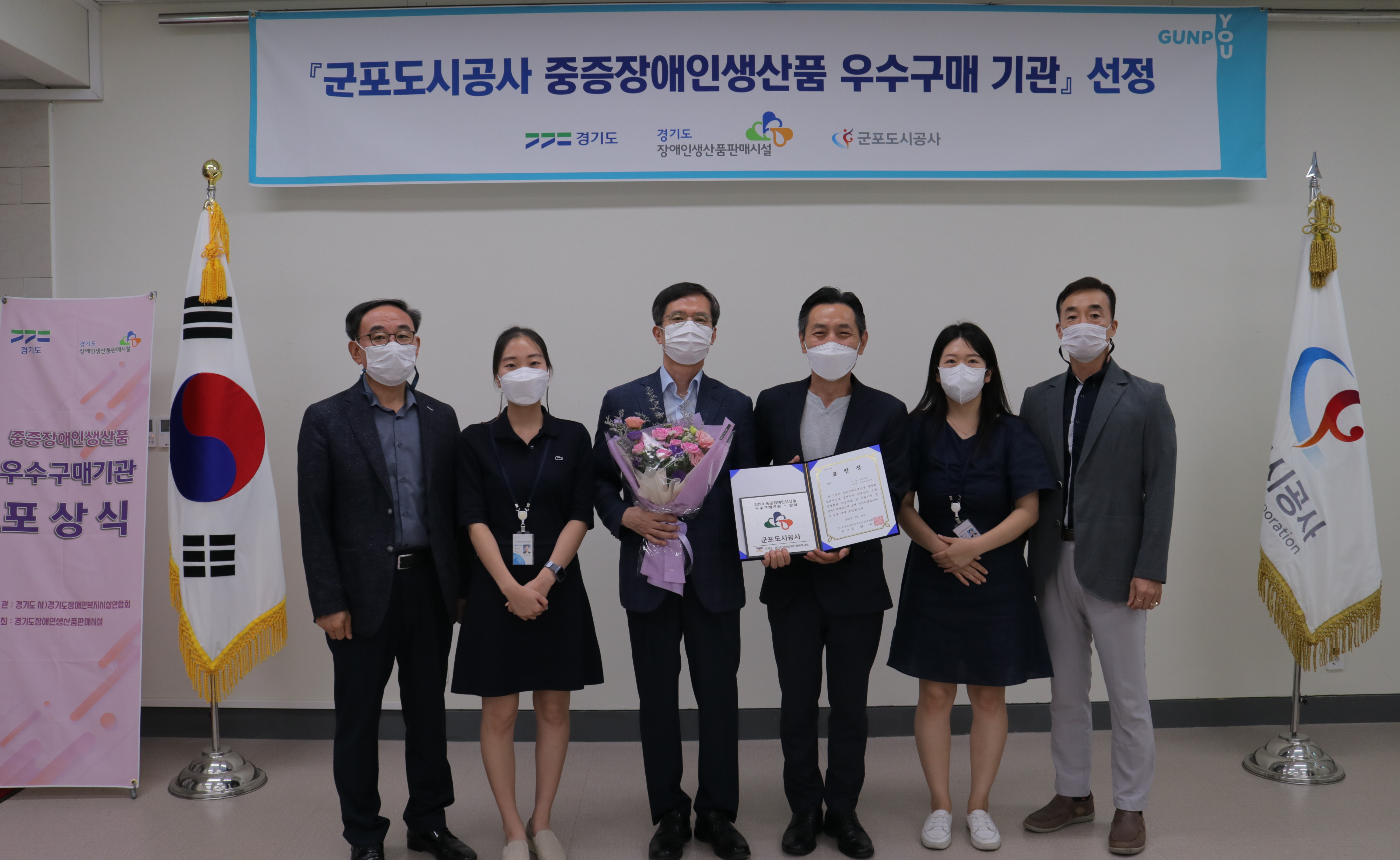 군포도시공사는 경기도와 (사)경기도장애인복지시설연합회에서 주관하는 중증장애인생산품 우수구매 기관으로 선정됐다고 23일 밝혔다.
