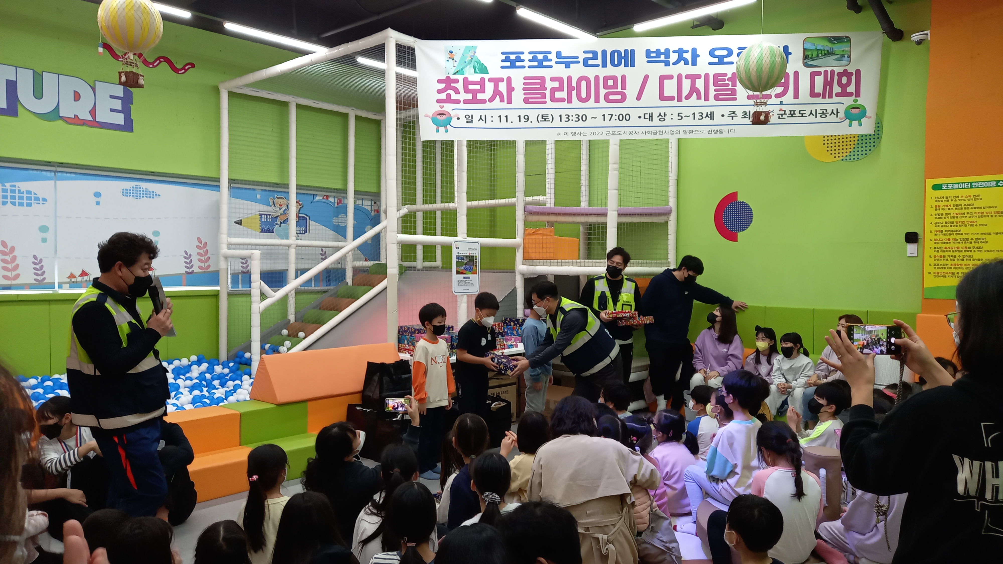 □ 국민체육센터에서 진행한 스포츠 대회는 포포누리 시설 중 클라이밍과 디지털스키 시설을 활용하여 관내 5~13세 아동을 대상으로 정서적 안정과 신체적 발달을 위한 취지로 대회로 개최했다. 약 100여명이 참여한 이 대회는 연령별 기록경쟁으로 1위부터 3위까지 상품을 증정받고 참가자 전원에게 메달을 수여했다.