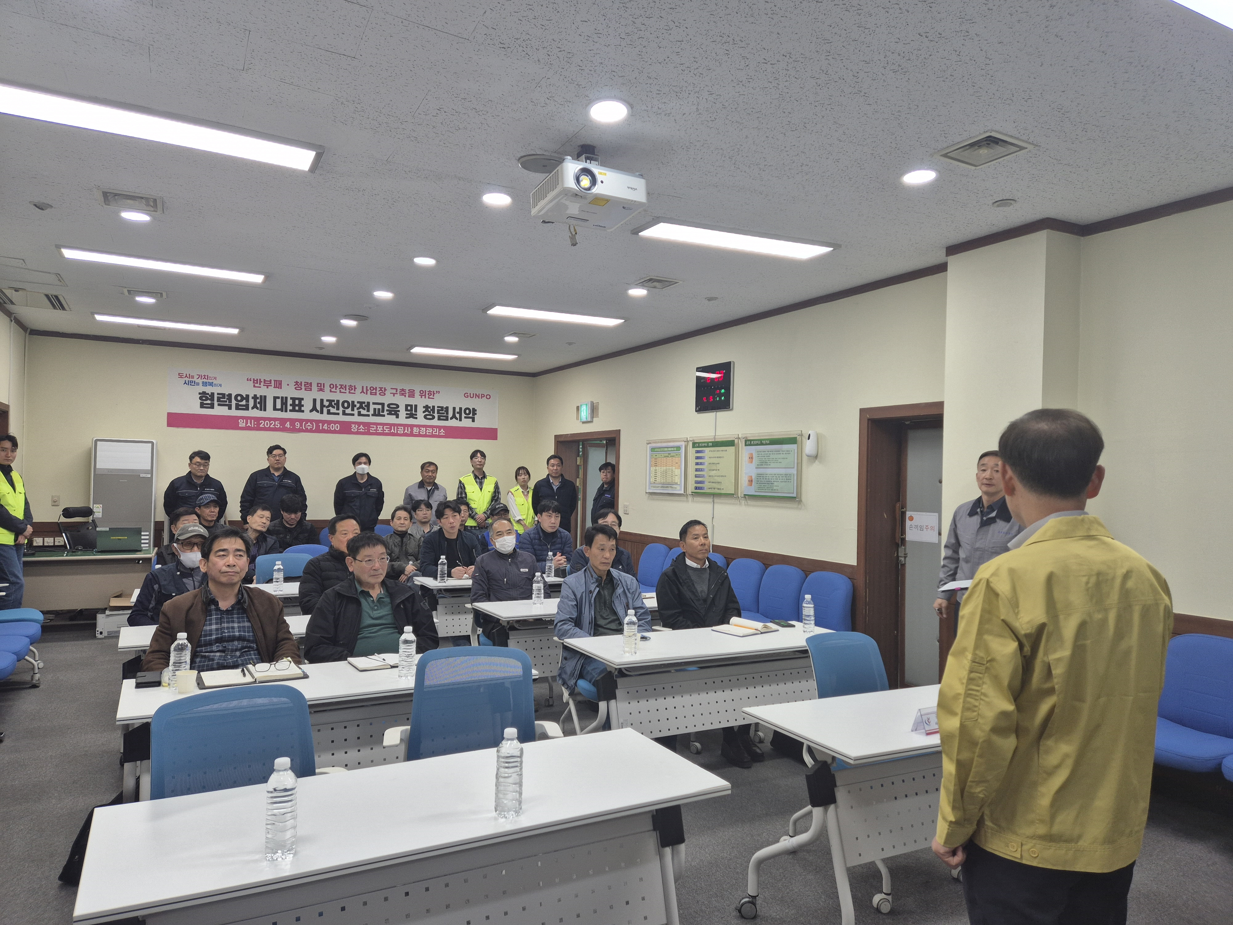 □ 군포도시공사(사장 배재국)는 지난 9일 군포환경관리소에서 ‘2025년 상반기 환경관리소 정기보수’와 관련하여 협력업체 대표자를 대상으로 특별안전교육 및 청렴서약을 실시했다.
