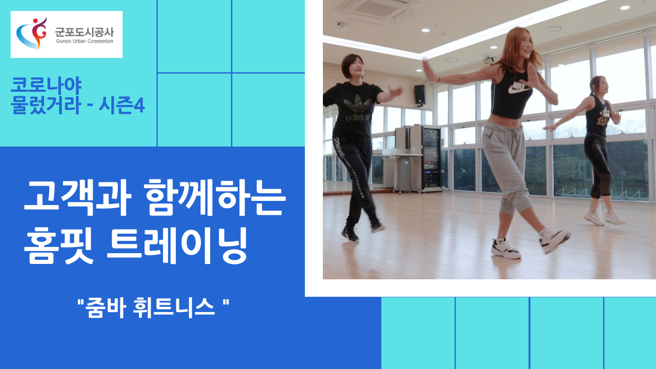 포스트 코로나 시대 - 생활체육 언택트 서비스 “시즌4” [고객과 함께하는 홈핏(HomeFitness) 트레이닝] 작지만 앞서가는 도시 - 군포시, 군포국민체육센터가 코로나에 굴하지 않는 시민 여러분을 위해 생활체육 동영상강좌 “시즌4”를 선사합니다. 군포 시민이 신청하고, 시민과 함께 만든 동영상에 맞추어 온가족이 함께 몸을 움직이며 유쾌하고 건강하게 코로나를 이겨 보세요!! www.gunpouc.co.kr /군포도시공사 “동영상 제작에 흔쾌히 참여해 주신 김태윤, 박시내 회원님께 깊이 감사드립니다!”