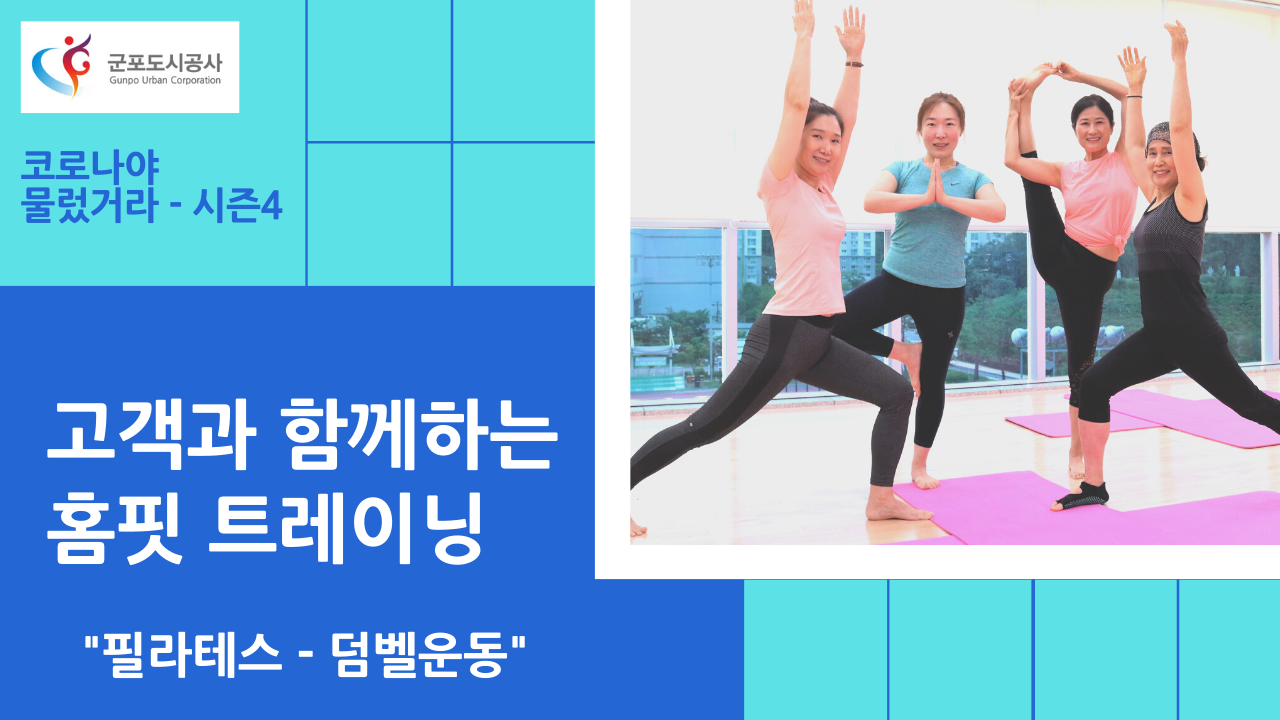 포스트 코로나 시대 - 생활체육 언택트 서비스 “시즌4” [고객과 함께하는 홈핏(HomeFitness) 트레이닝] 작지만 앞서가는 도시 - 군포시, 군포국민체육센터가 코로나에 굴하지 않는 시민 여러분을 위해 생활체육 동영상강좌 “시즌4”를 선사합니다. 군포 시민이 신청하고, 시민과 함께 만든 동영상에 맞추어 온가족이 함께 몸을 움직이며 유쾌하고 건강하게 코로나를 이겨 보세요!! www.gunpouc.co.kr /군포도시공사 “동영상 제작에 흔쾌히 참여해 주신 회원님들께 깊이 감사드립니다!” #군포시#군포도시공사#군포국민체육센터#코로나19#포스트_코로나#언택트#온택트#온택트_필라테스#생활체육#시즌4#군포시홈핏서비스#홈핏리퀘스트#덤벨운동#김정애_강사